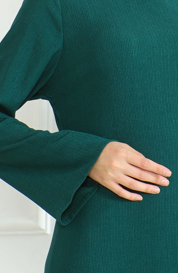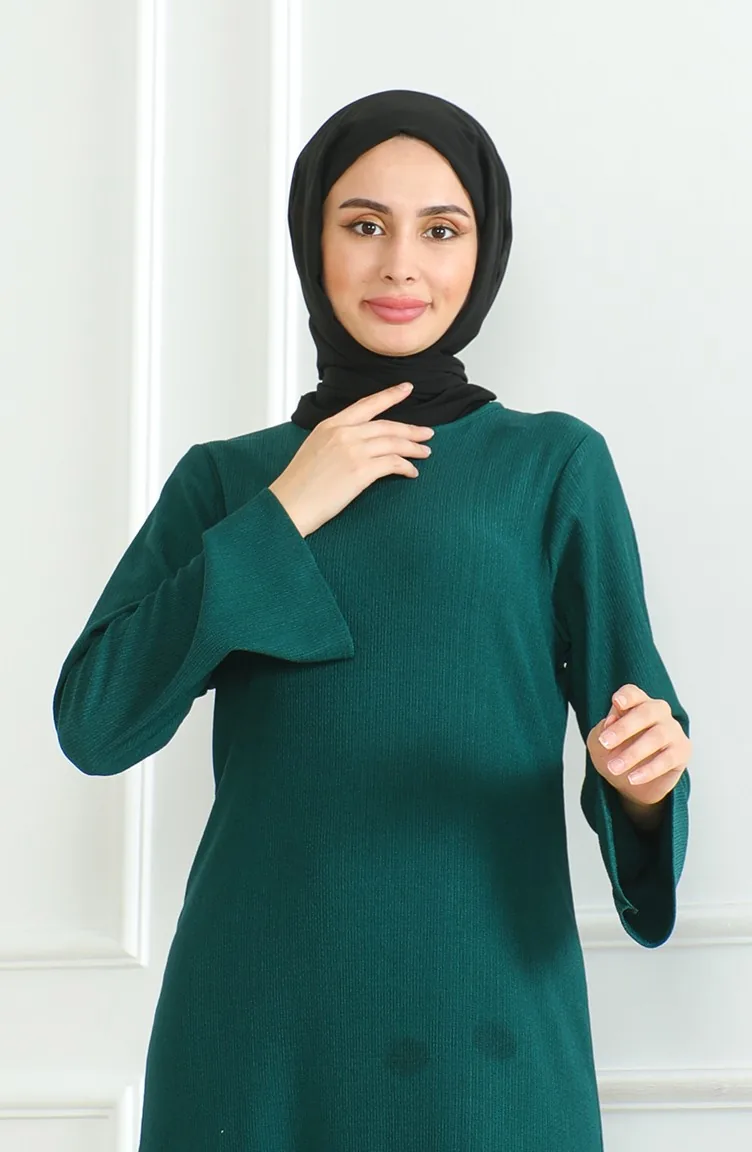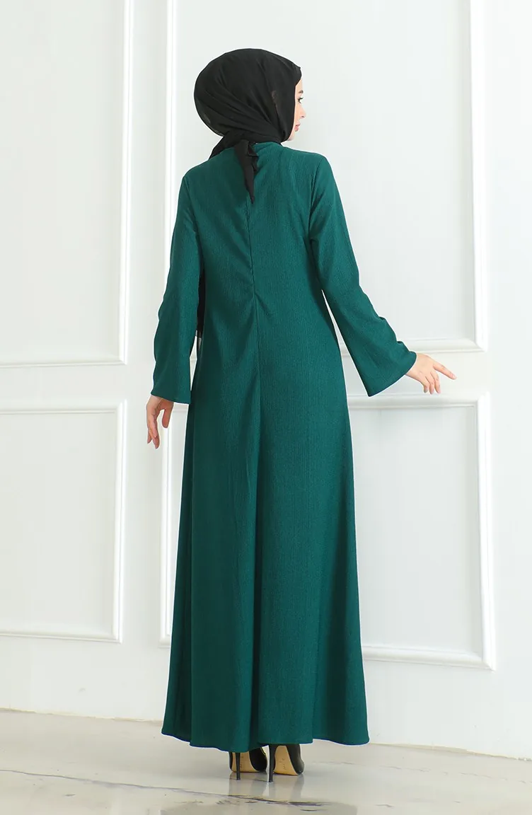 Emerald green color used. Designed by Gauze fabric. It has a plain appearance. The product is used unlined. The Zero collar is preferred for all types of clothing. Suitable for 4 seasons. Spor. Plus size option available.