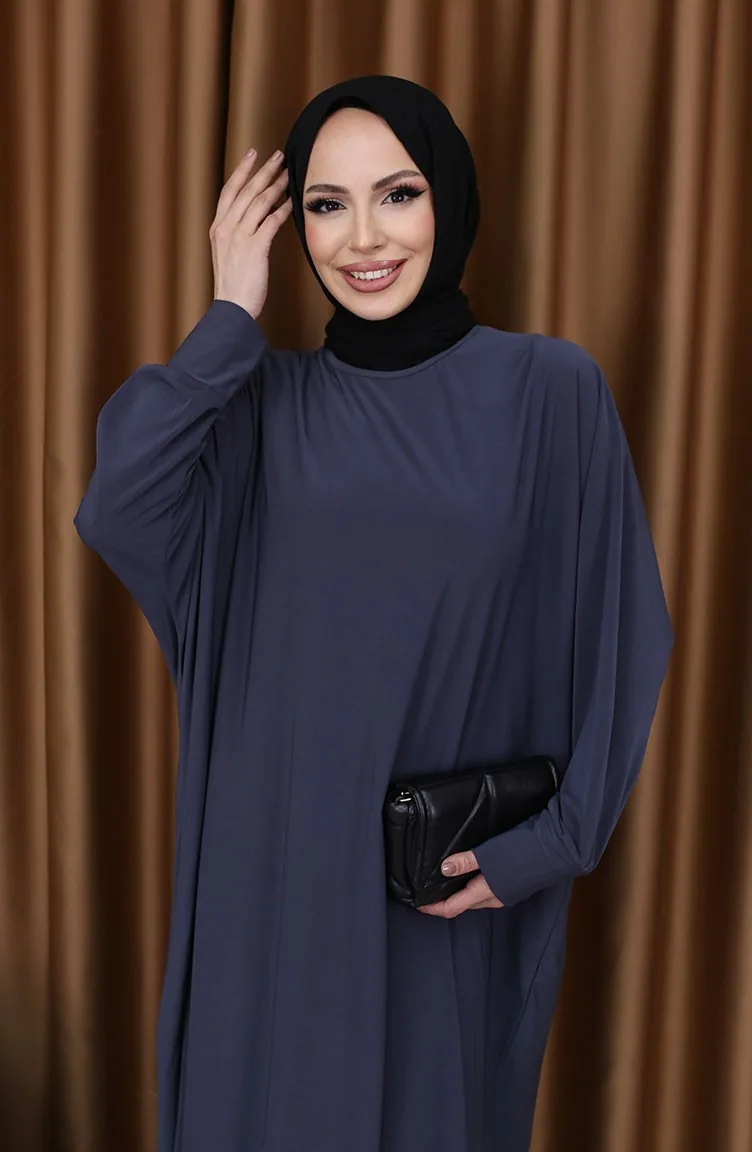Dark gray color is used. It has a plain appearance. The product is used unlined. It has batwing sleeve. The Zero collar is preferred for all types of clothing. Suitable for 4 seasons. The size worn by the model, is the one on the image.