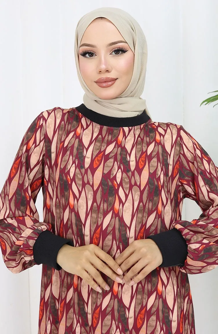 Chiffon Stof Bladmotief Jurk 0054-02 Pruim 0054-02