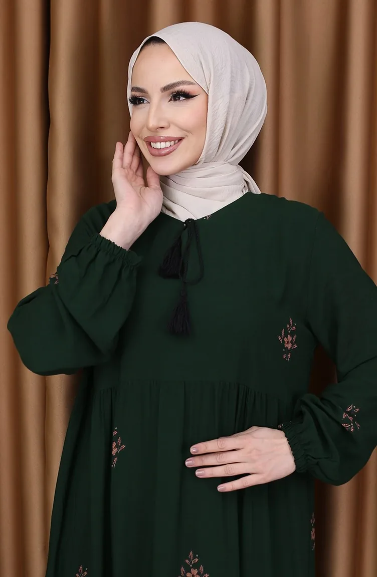 Renk ve kumaş güzel.Ancak boyu düz ayakkabı için uzun.Ve yazlık bir elbise.