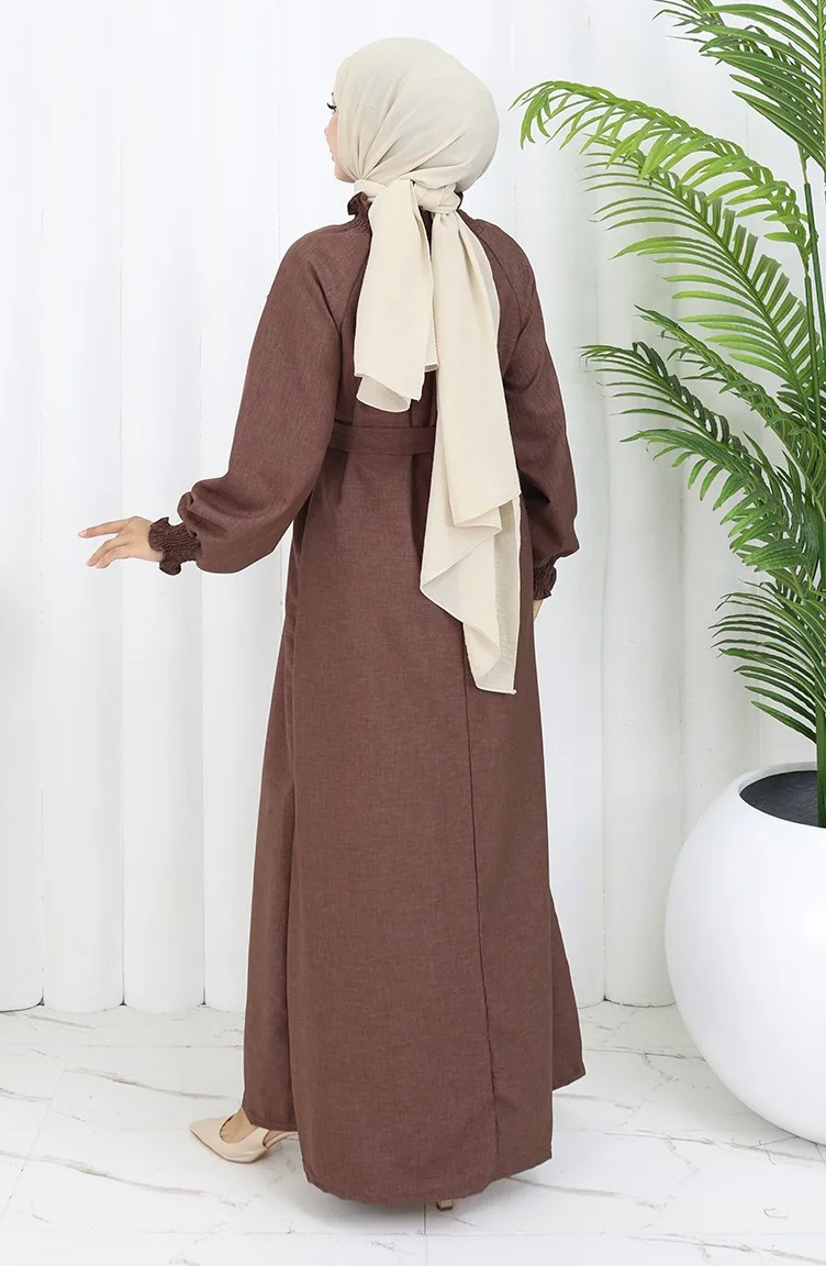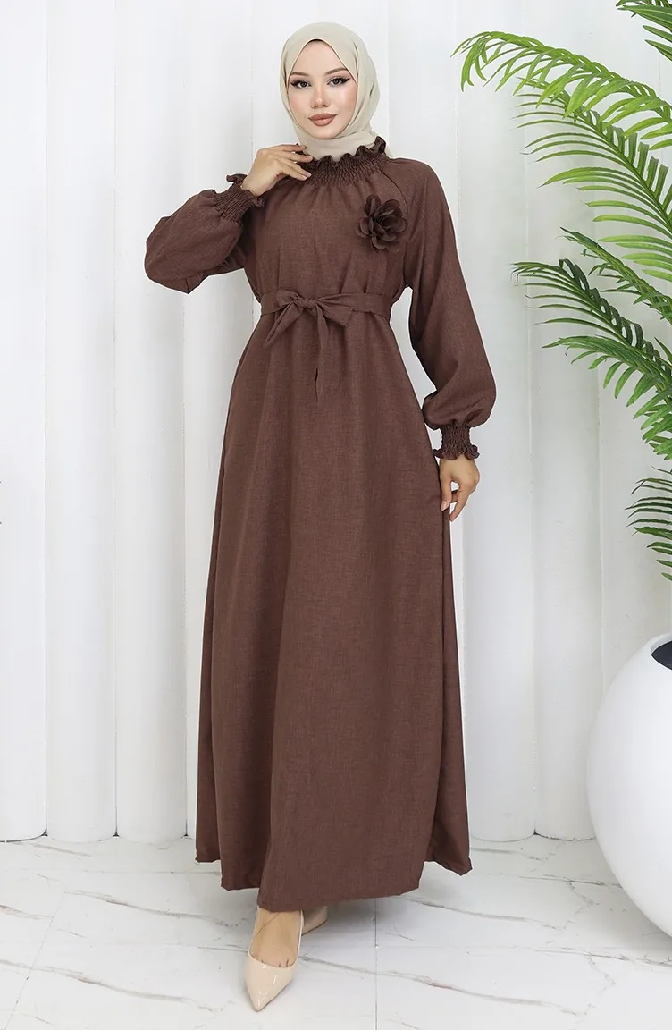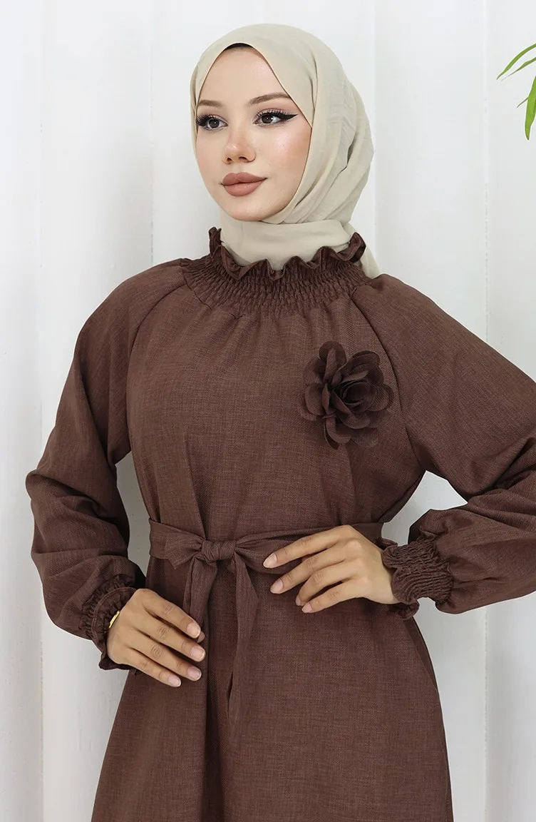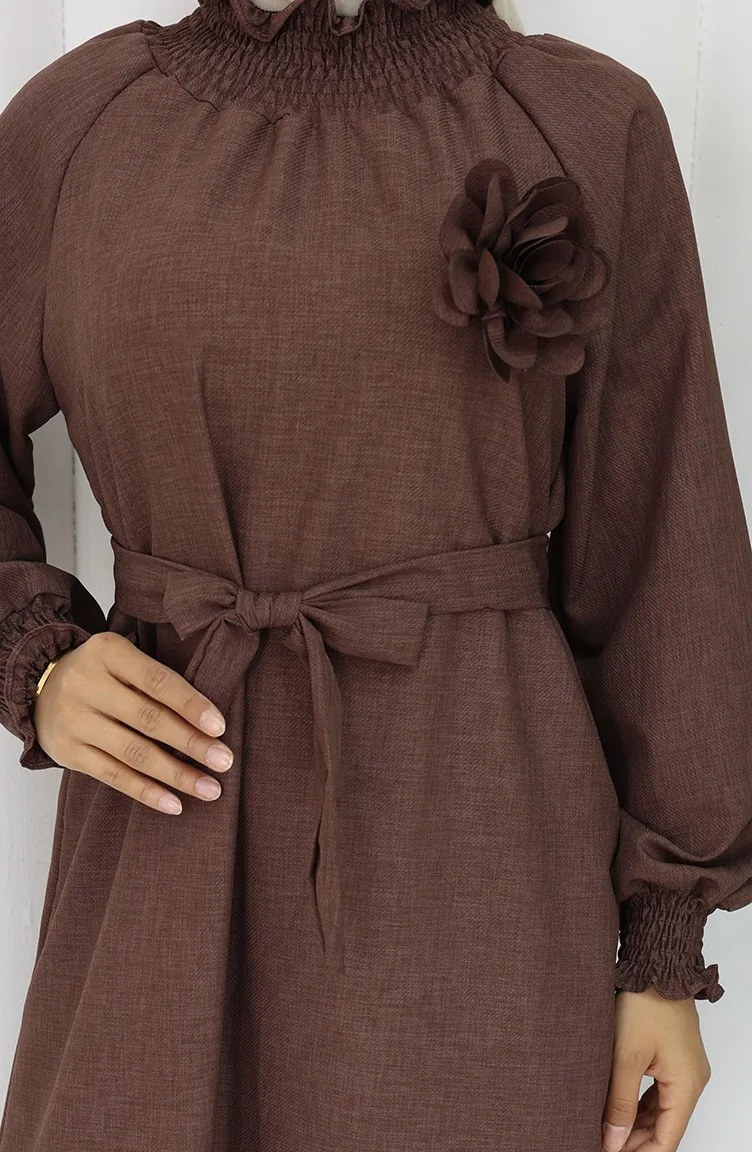 Elastische Gedetailleerde Riemjurk 2063-03 Bruin 2063-03