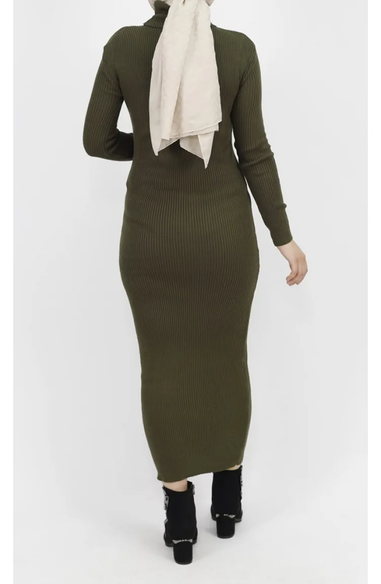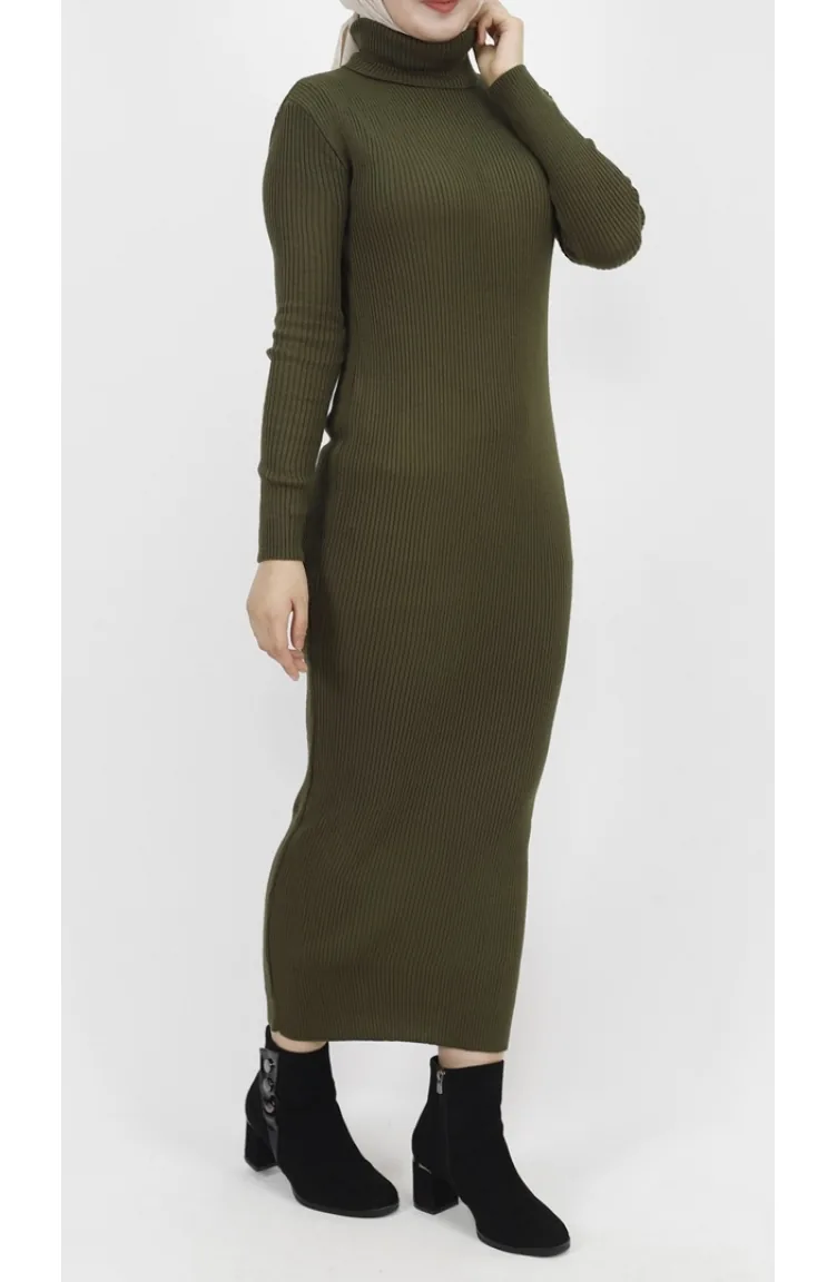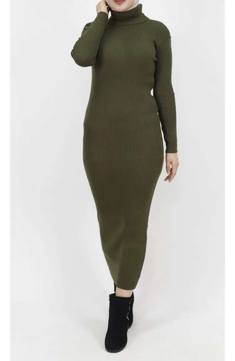 Gebreide Jurk Met Col En Koord 1032-02 Kaki 1032-02