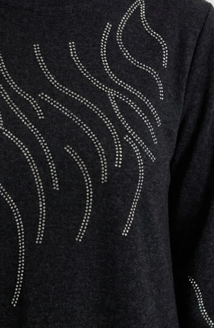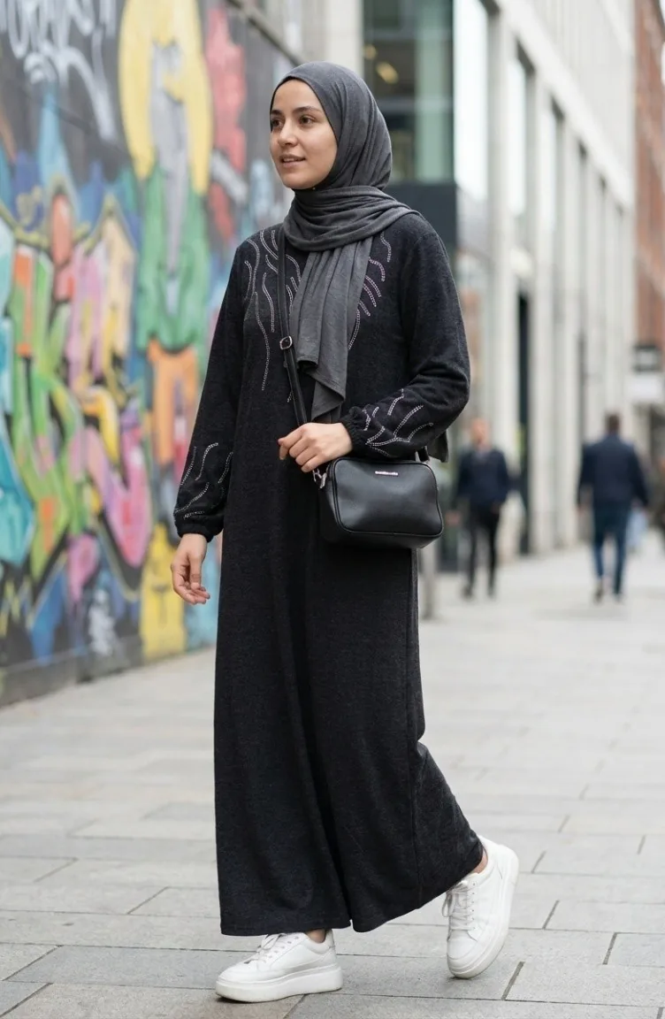 Gebreide Winterjurk Met Steenprint En Hijab-design 2194A-02 Zwart 2194A-02