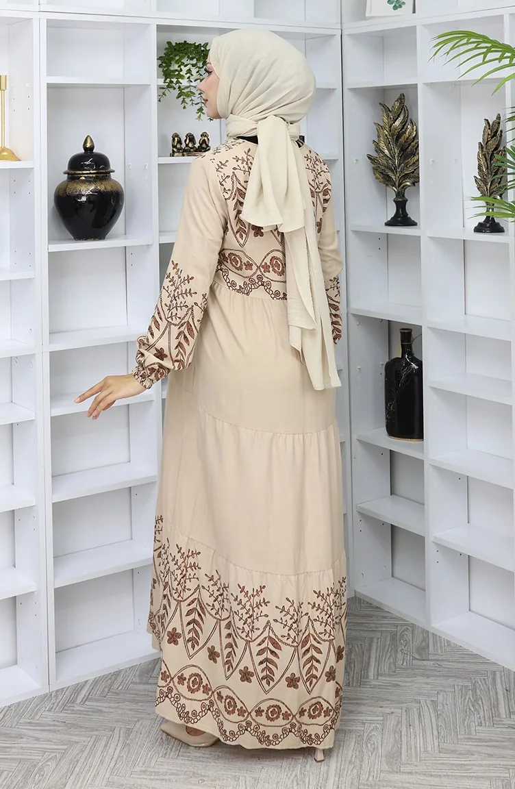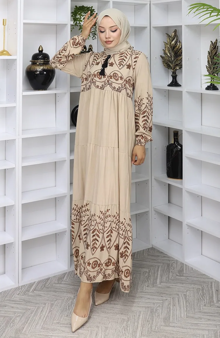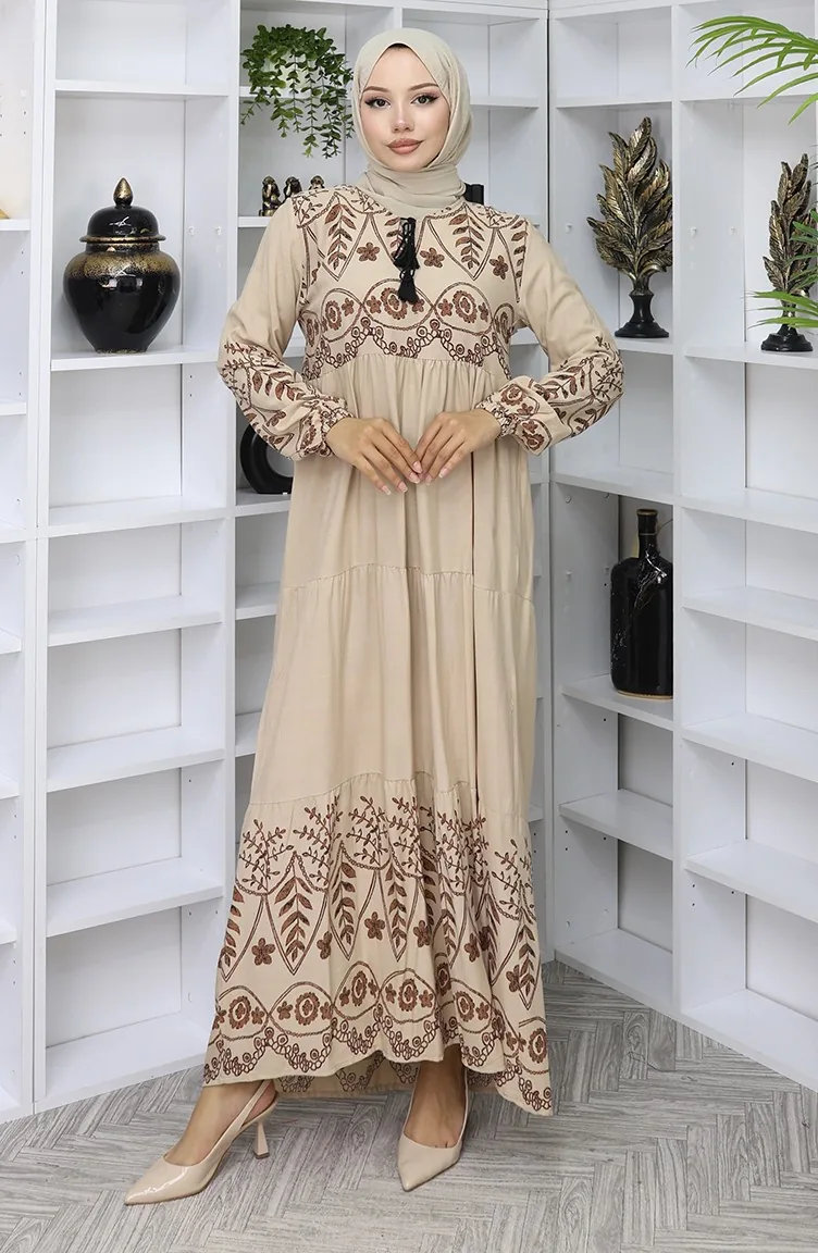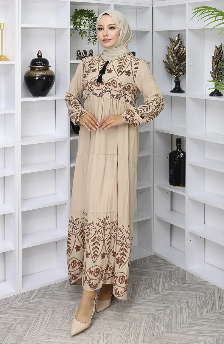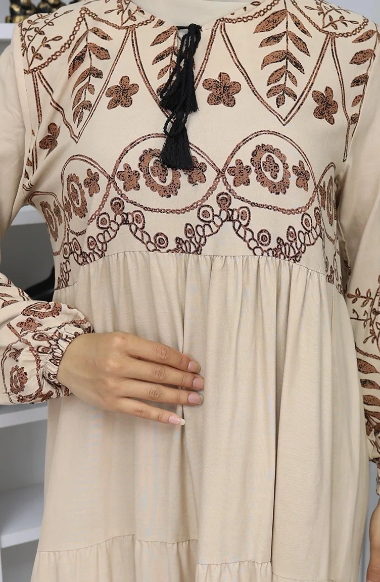 Gedessineerde Viscosejurk 4076-06 Mink 4076-06
