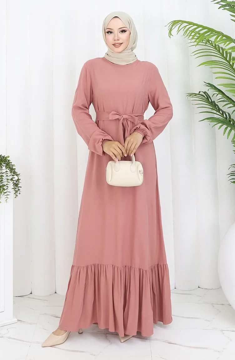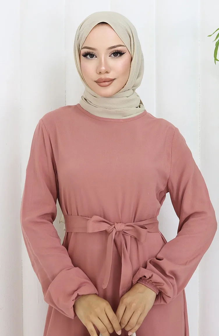 Geplooide Jurk Met Riem En Rok 4103-07 Onion Skin 4103-07