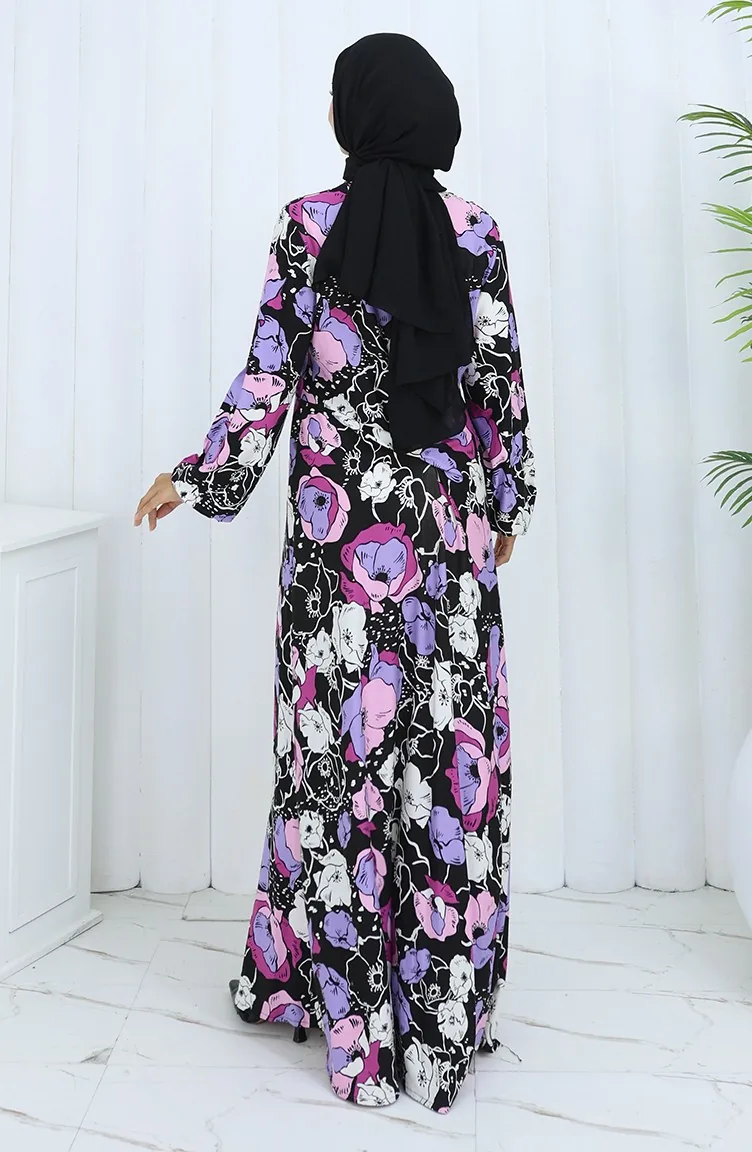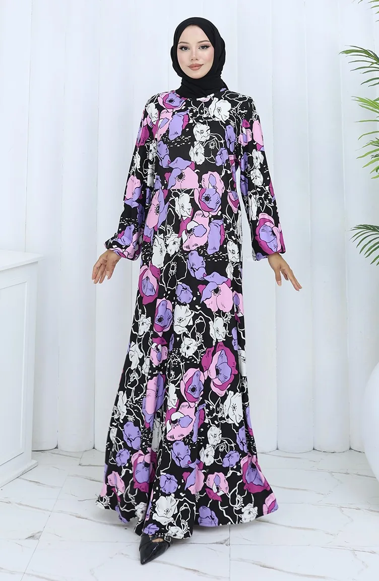 Black color is used. Designed with patterned fabric. It's made of elastic sleeves. Suitable for 4 seasons. Plus size option available.