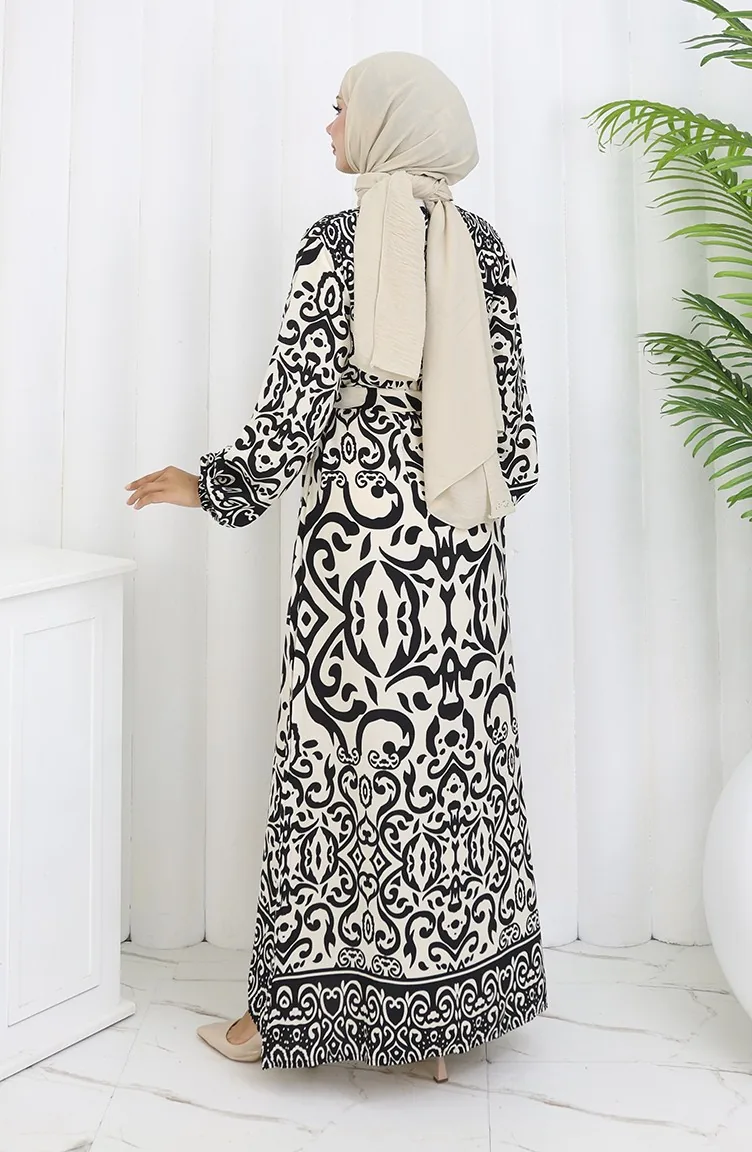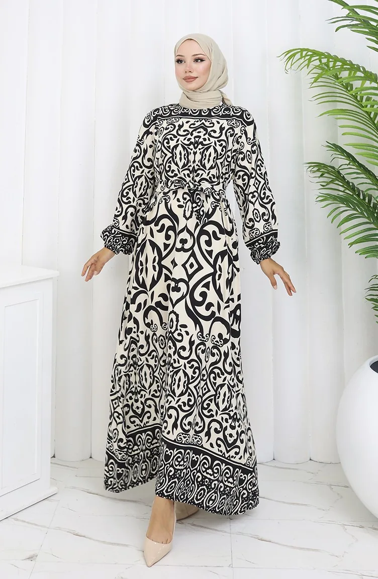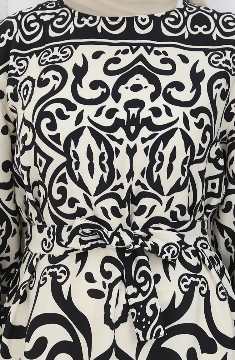 Gestreepte Jurk Met Riem 2091-03 Zwart En Wit 2091-03