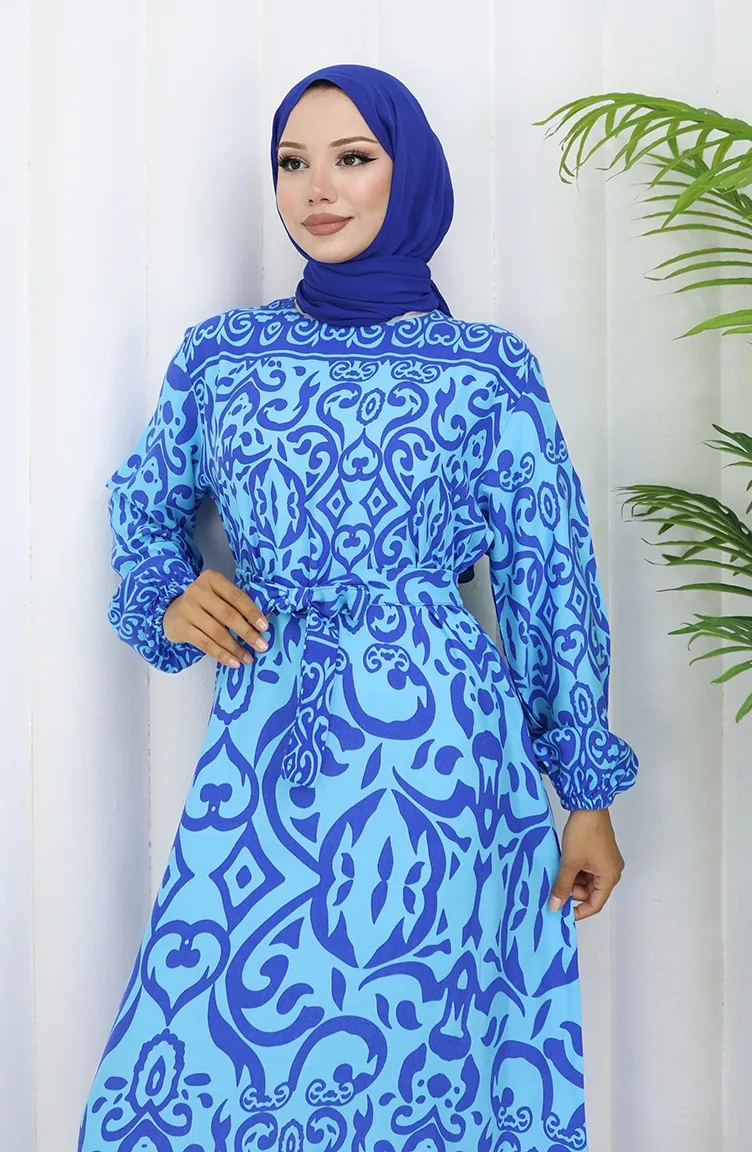 Gestreepte Jurk Met Riem 2091-04 Mintblauw Saxe 2091-04