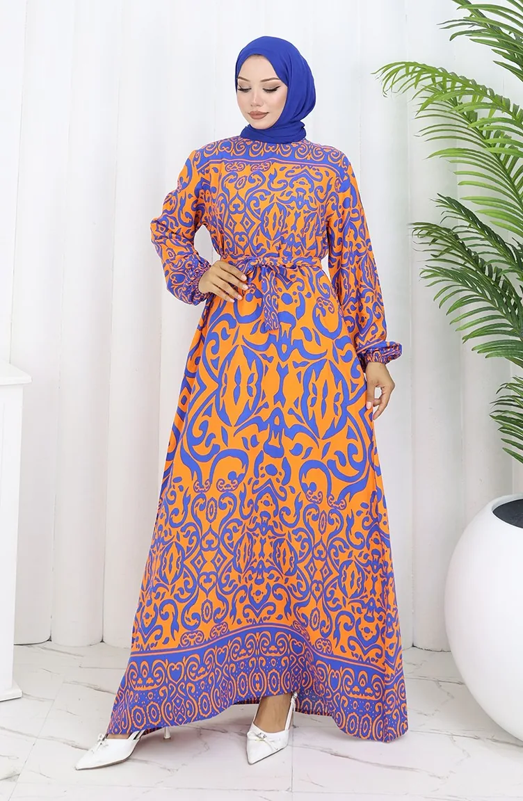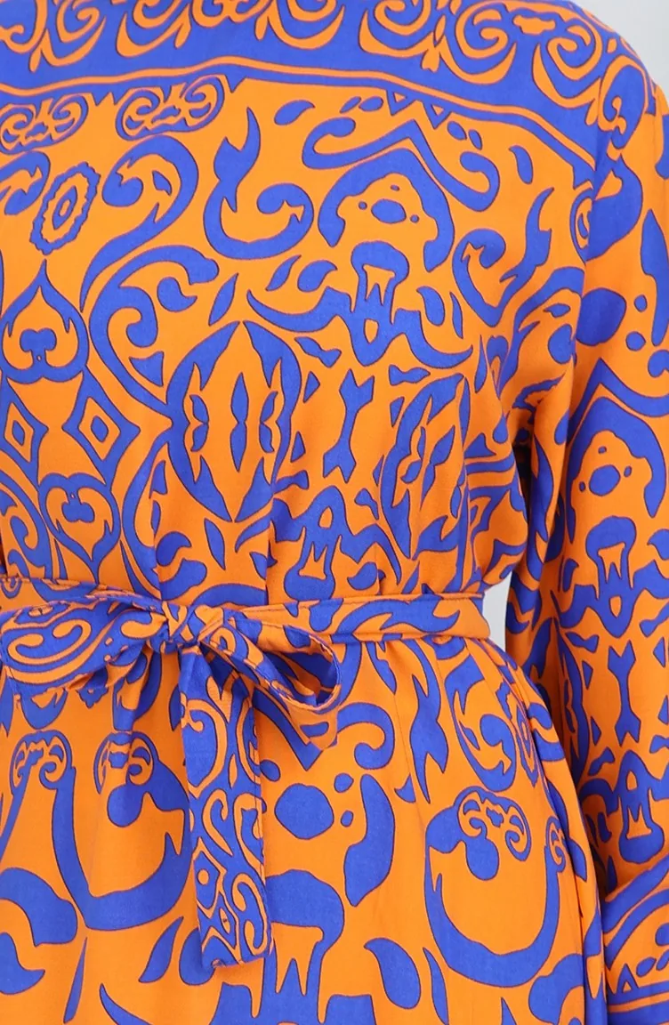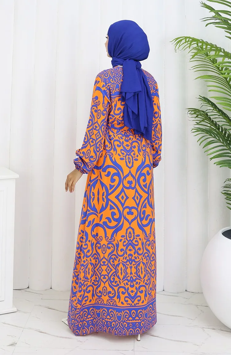 Orange color used. Viscose is a type of synthetic fabric and is convenient to use. Designed with patterned fabric. Buttons have been used to make it easy to use. It's made of elastic sleeves. The Zero collar is preferred for all types of clothing. Suitable for 4 seasons. Plus size option available.