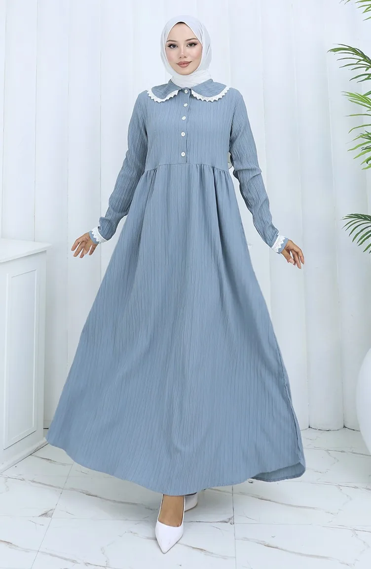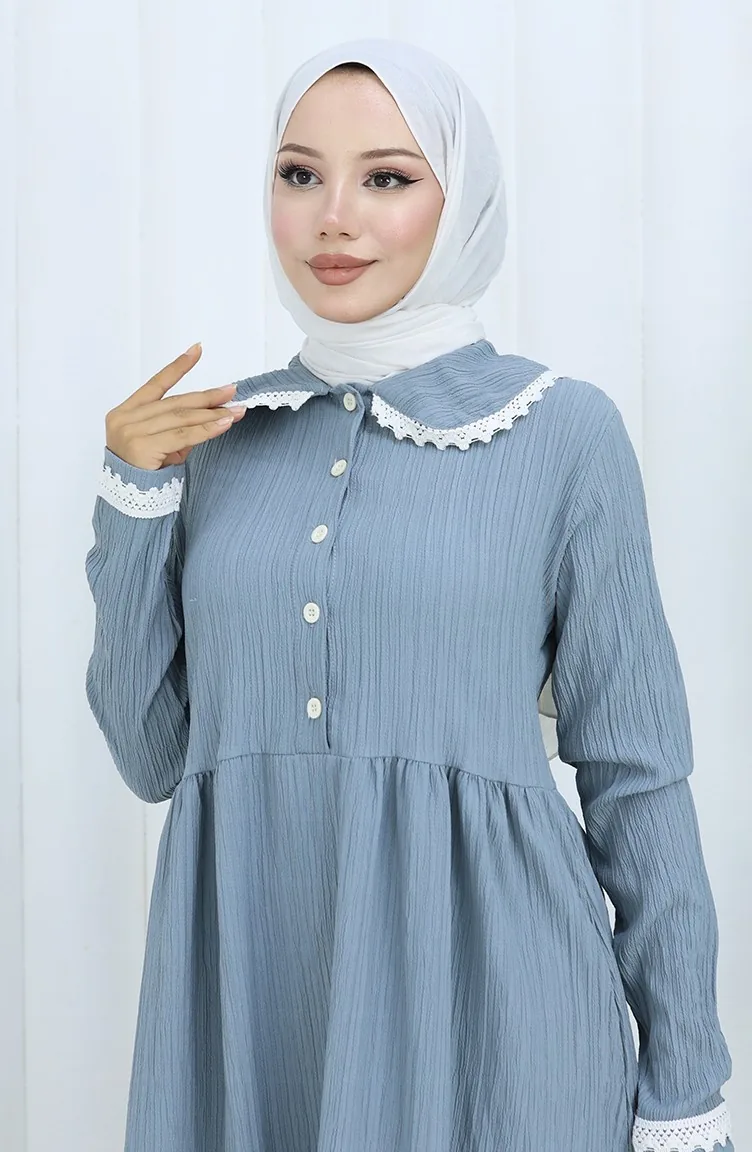 Half Geknoopte Kanten Jurk 2145-03 Grijs 2145-03