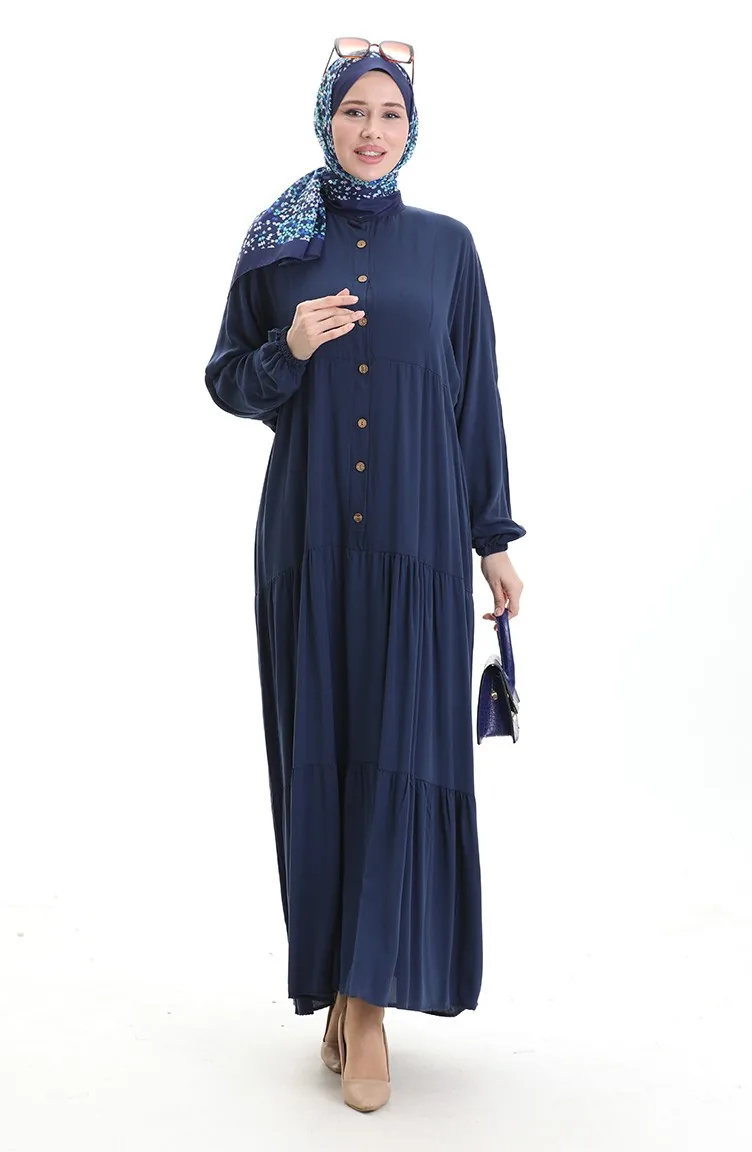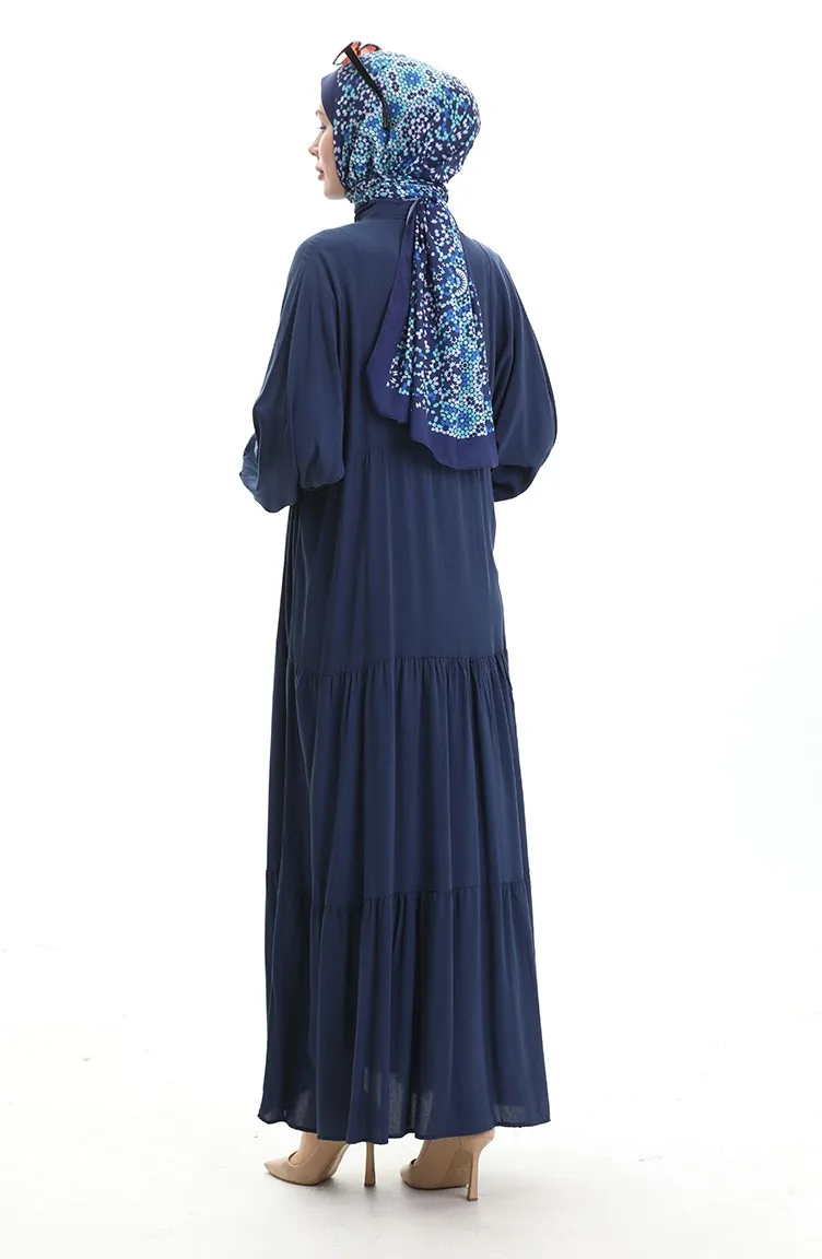 Halfgeknoopte Jurk Met Opstaande Kraag 0090-04 Marineblauw 0090-04