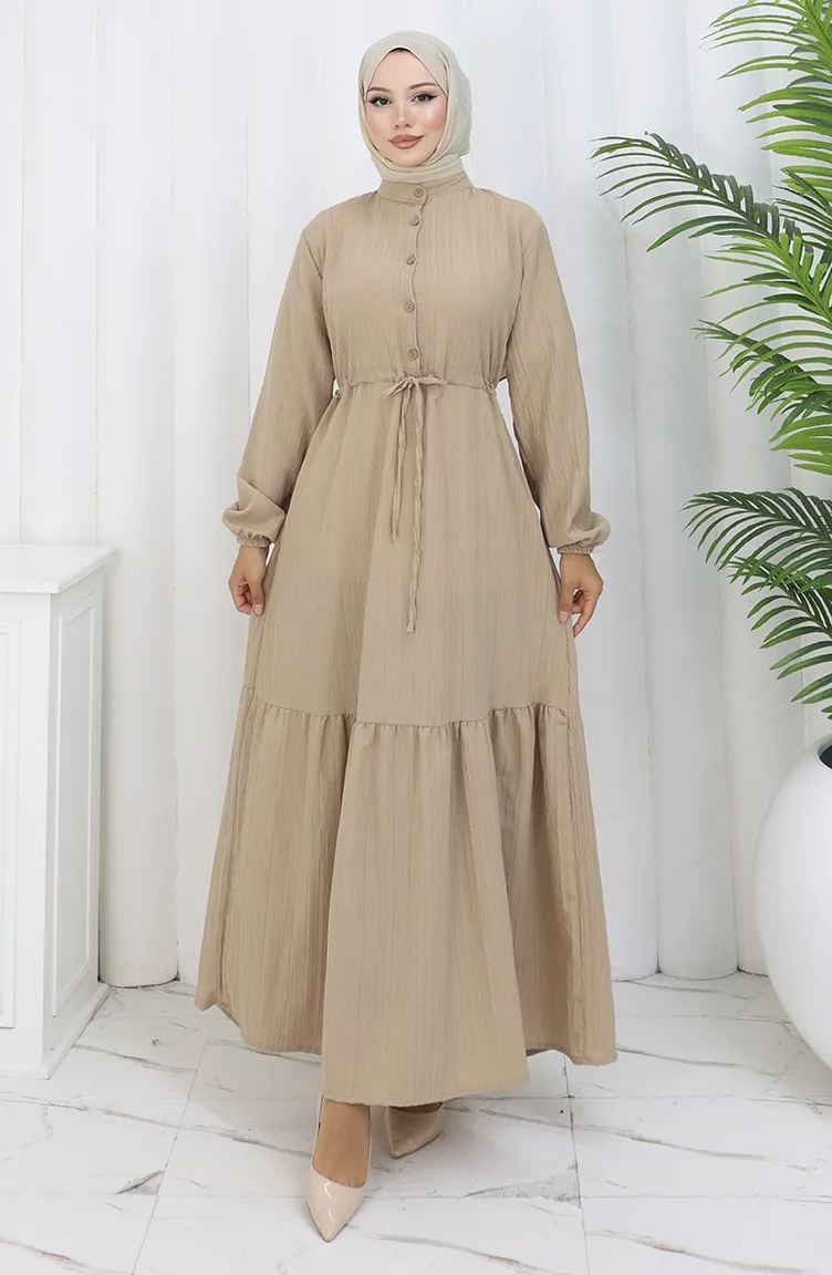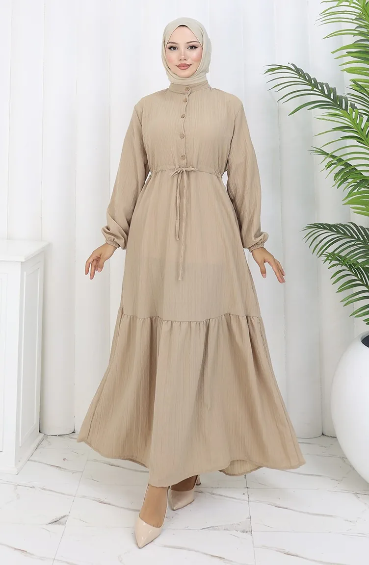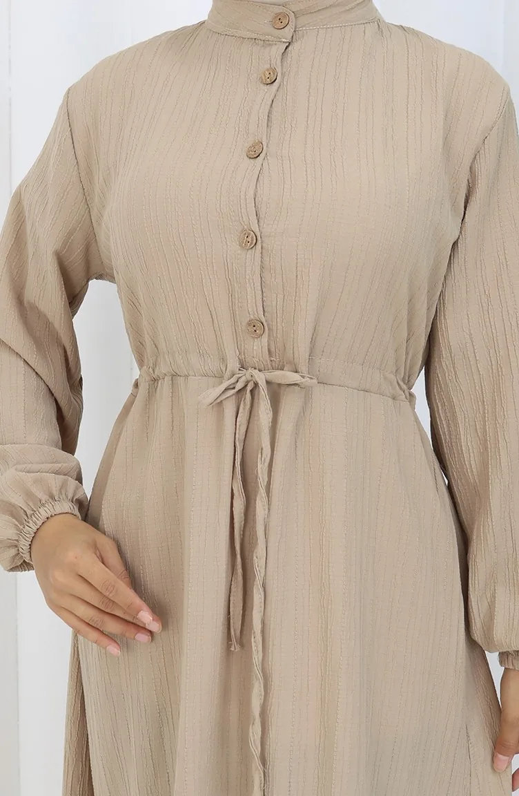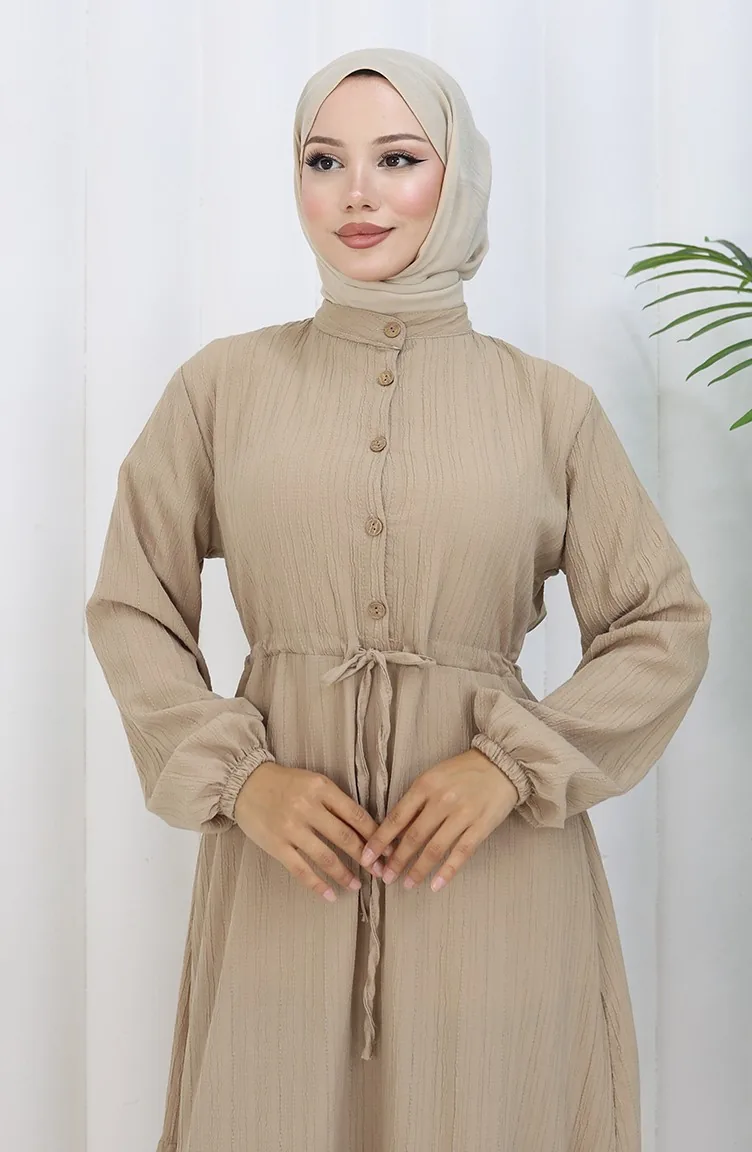 Halfgeknoopte Jurk Met Strik In De Taille 0183-01 Beige 0183-01