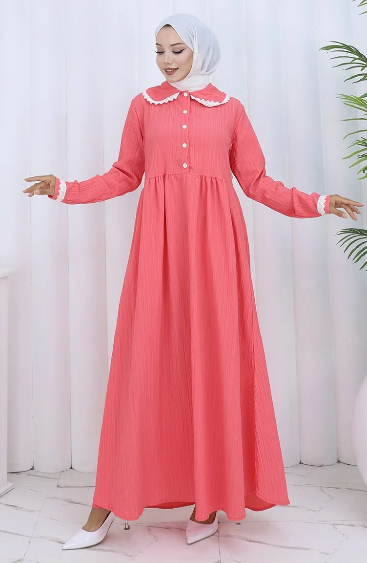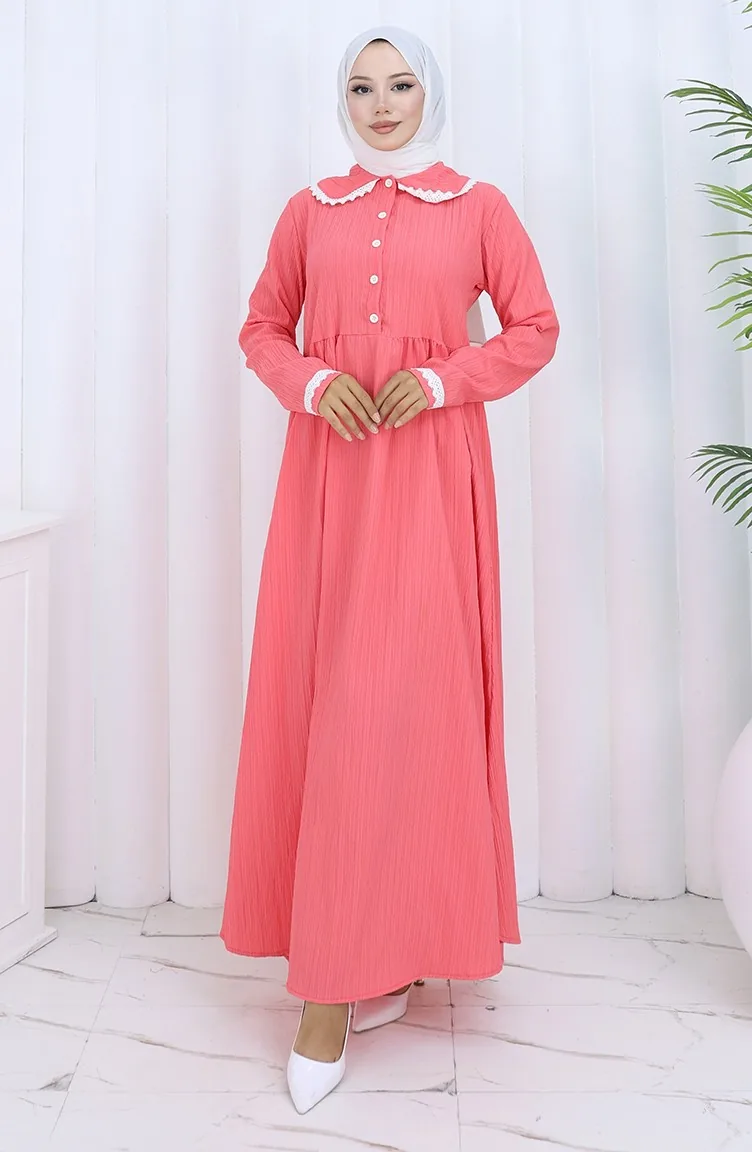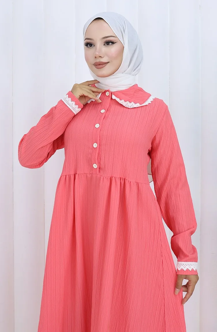 Halfgeknoopte Kanten Jurk 2145-01 Roze 2145-01