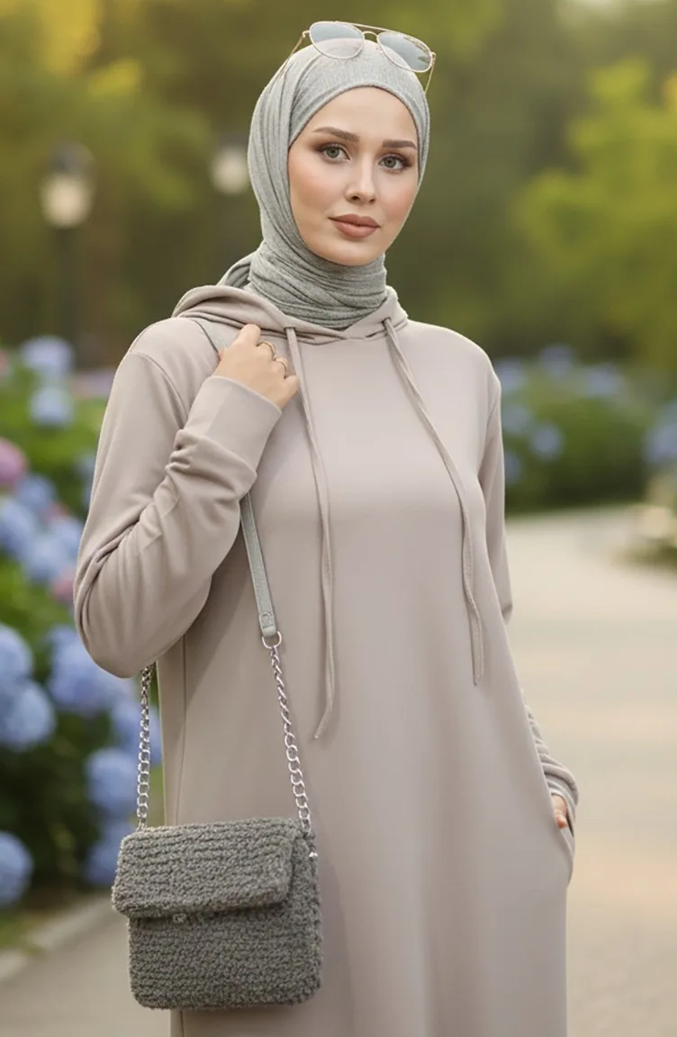 İki İplik Kapüşonlu Spor Elbise 0190-13 Taş 0190-13