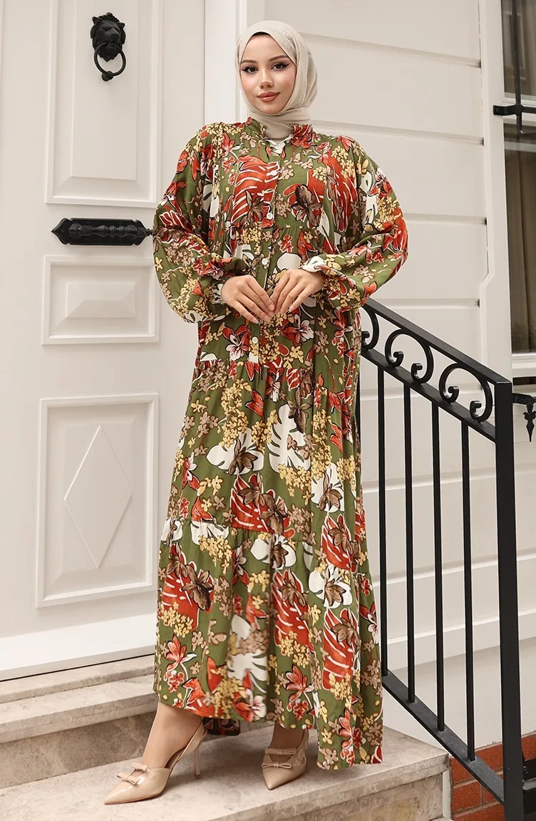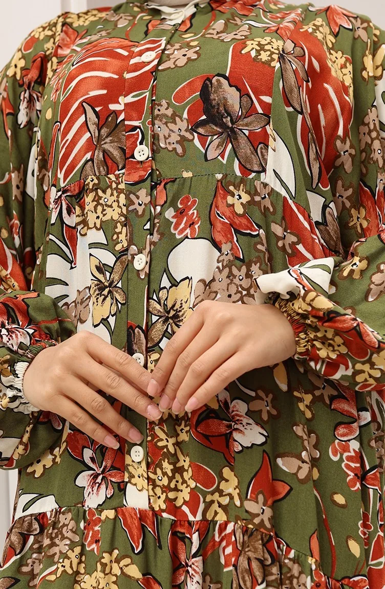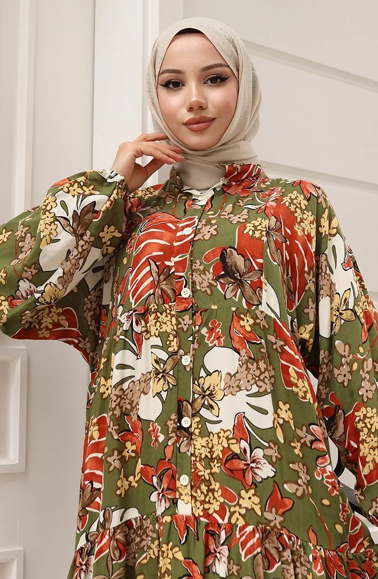Jurk Met Alaçatı-patroon En Knopen 2021-03 Kaki Baksteen 2021-03