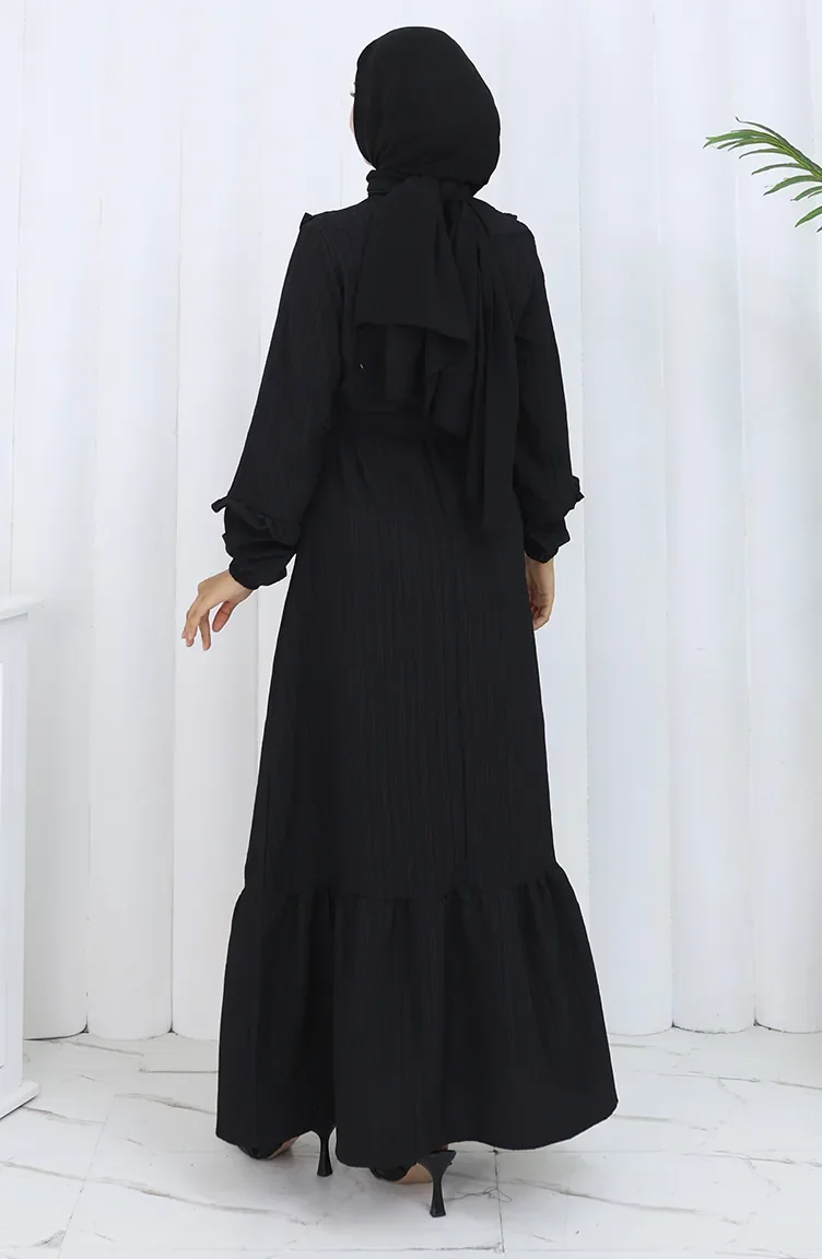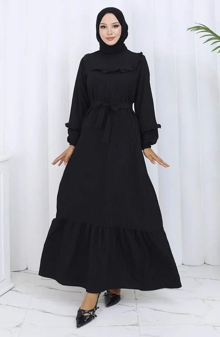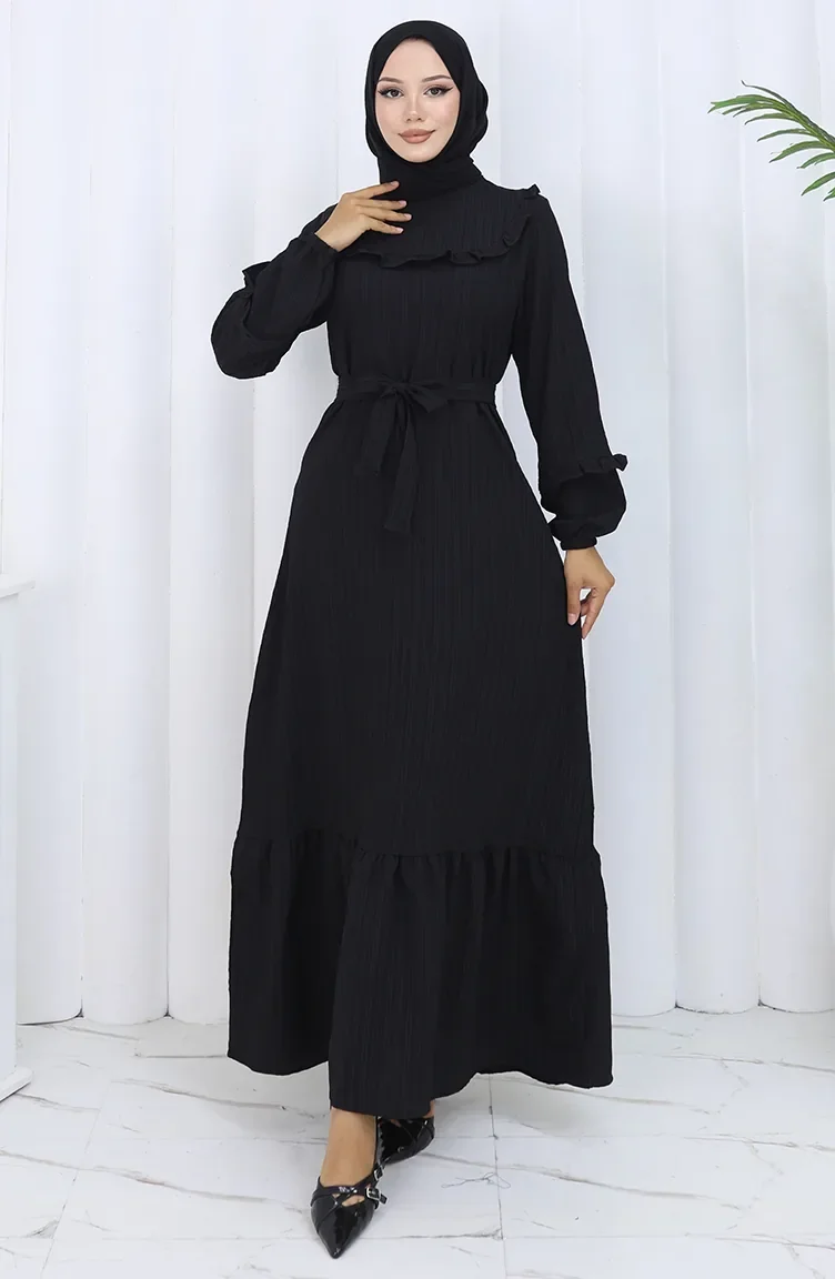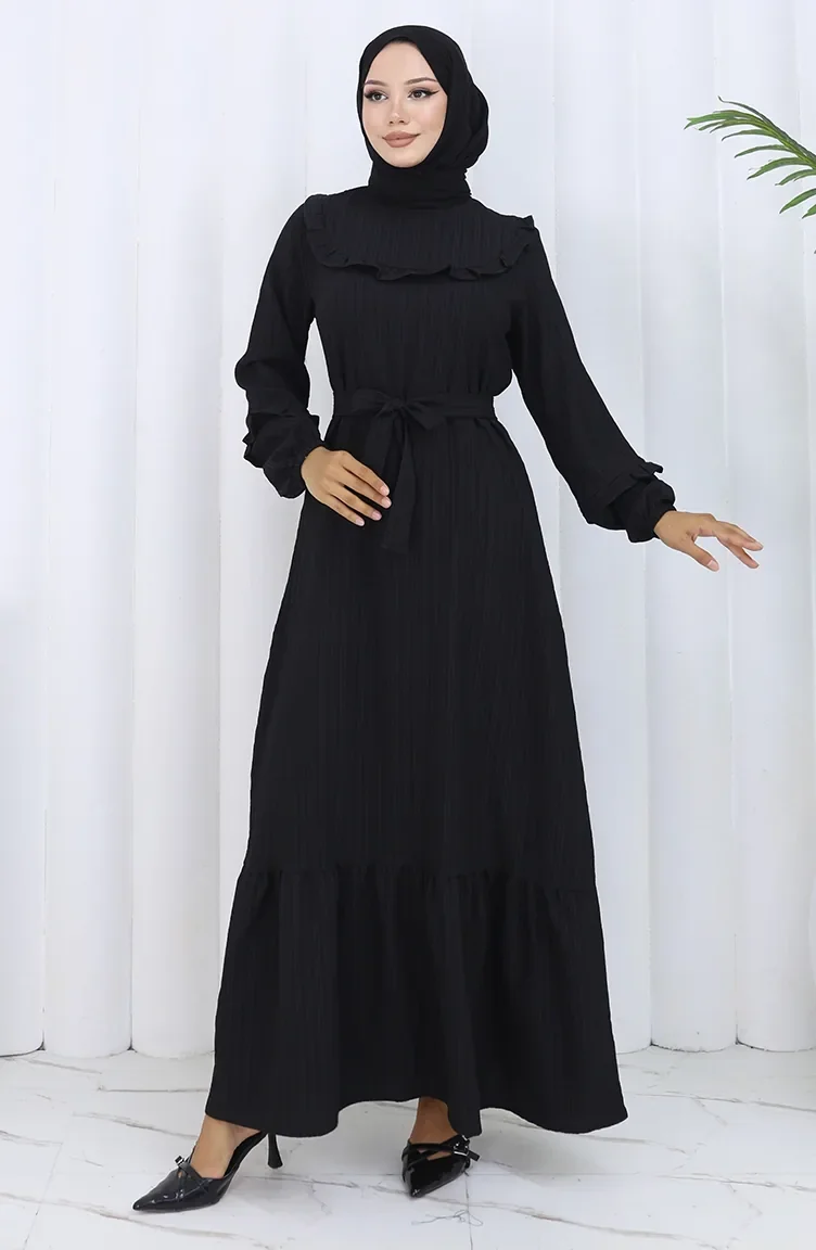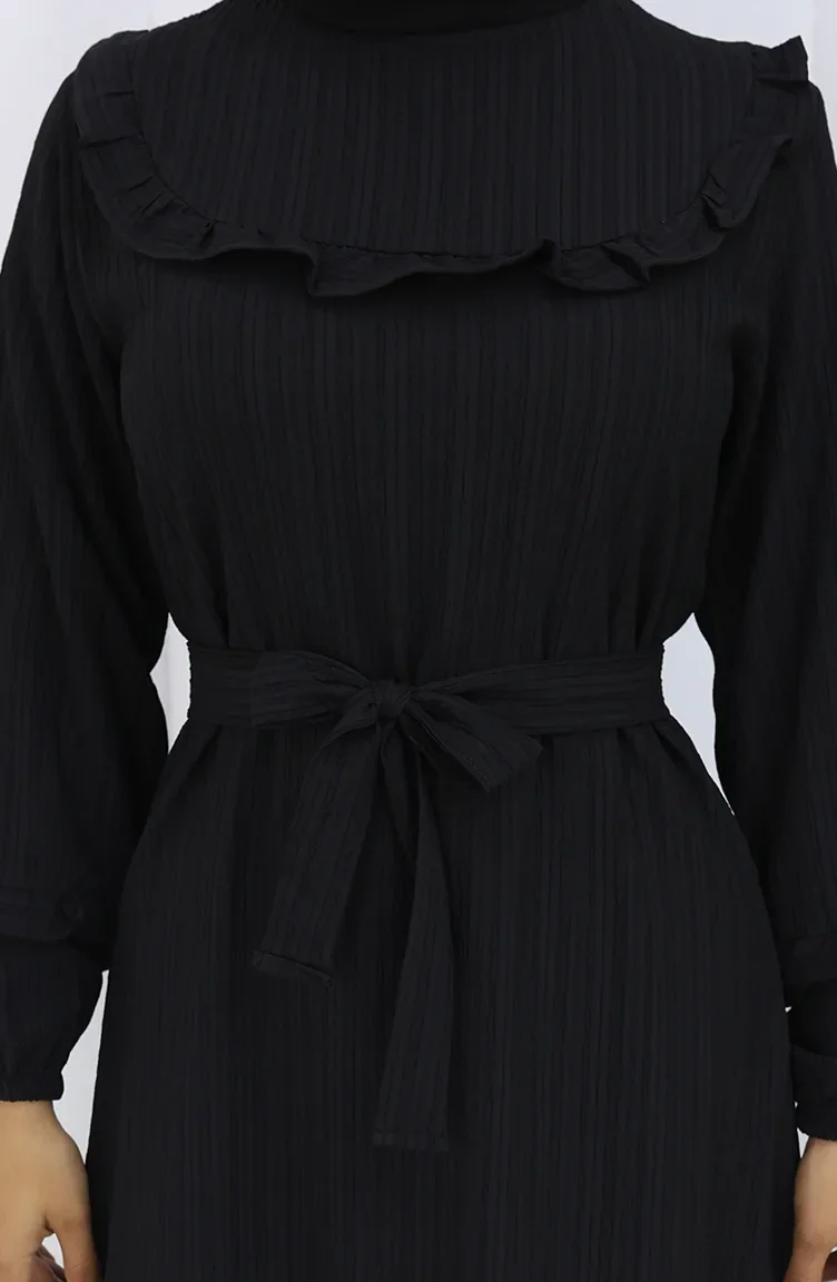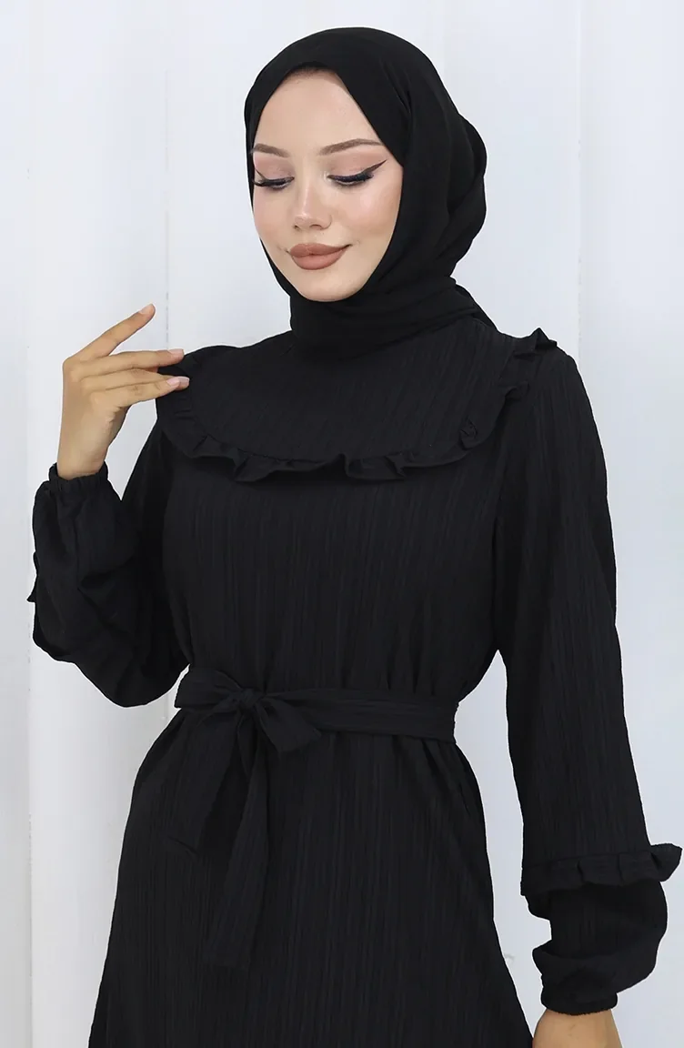 Jurk Met Gerimpelde Kraag En Riem 2123-01 Zwart 2123-01