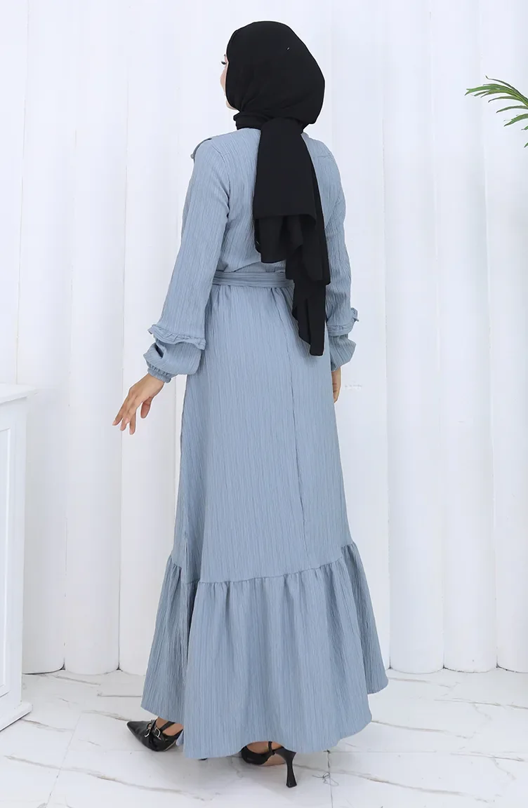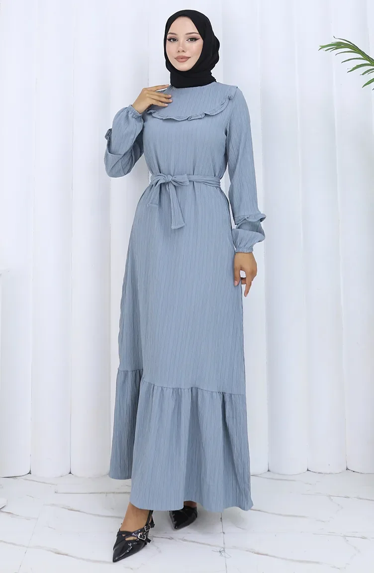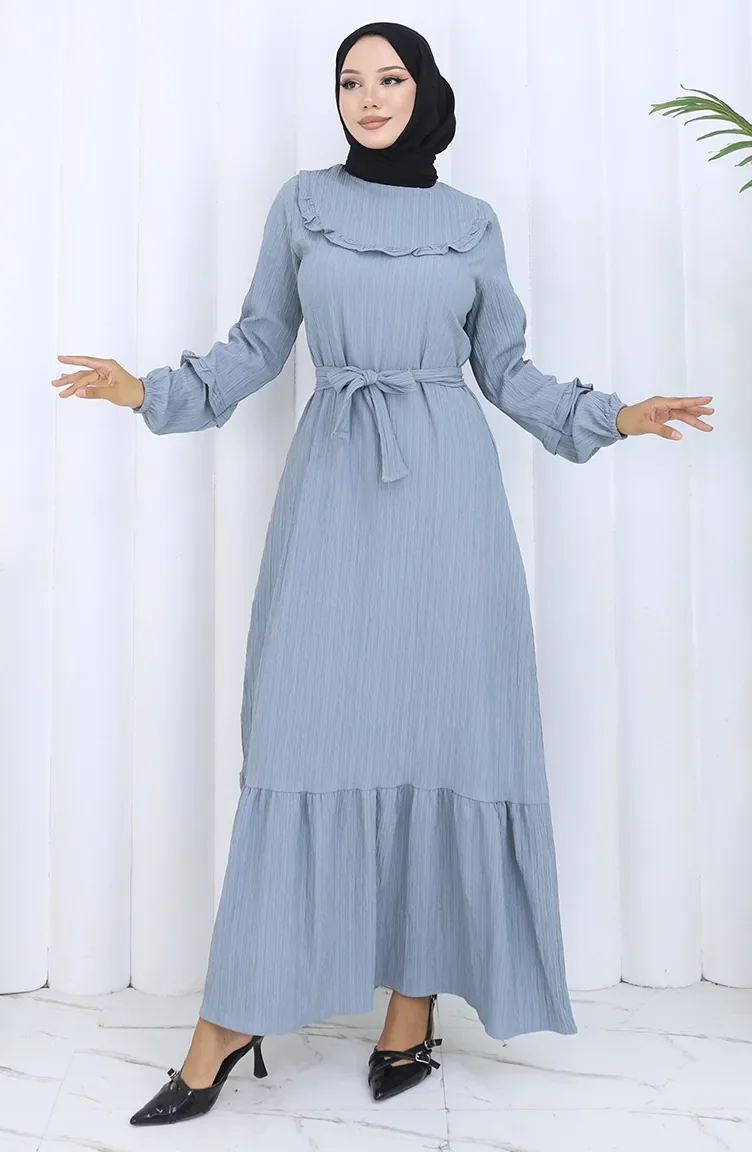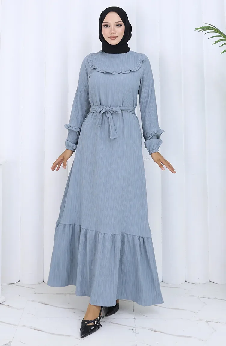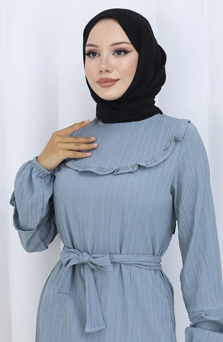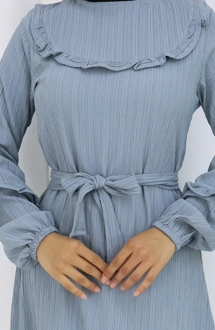 Jurk Met Gerimpelde Kraag En Riem 2123-03 Grijs 2123-03