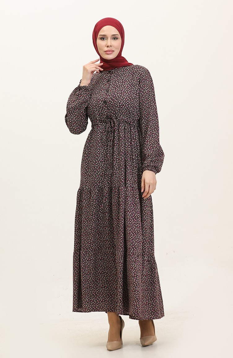 Jurk Met Halfknopen En Patroon 0368-04 Pruim 0368-04