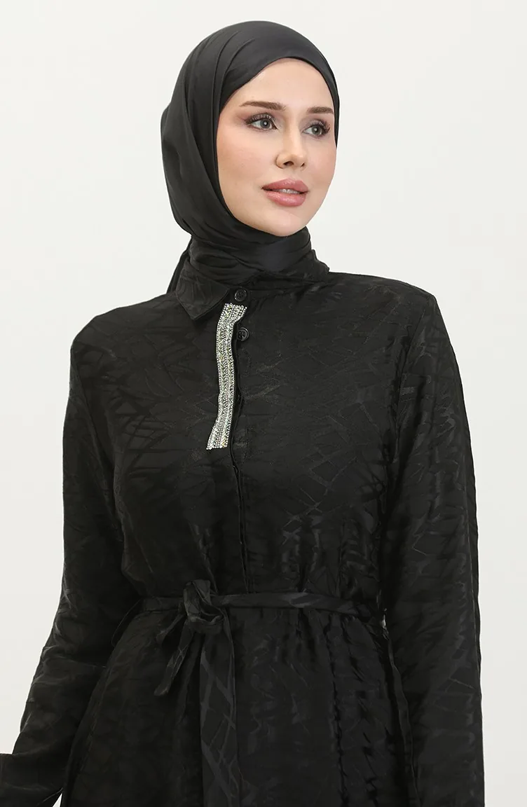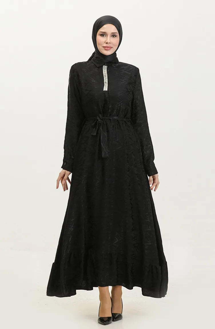 Jurk Met Overhemdkraag En Patroon 81854-01 Zwart 81854-01