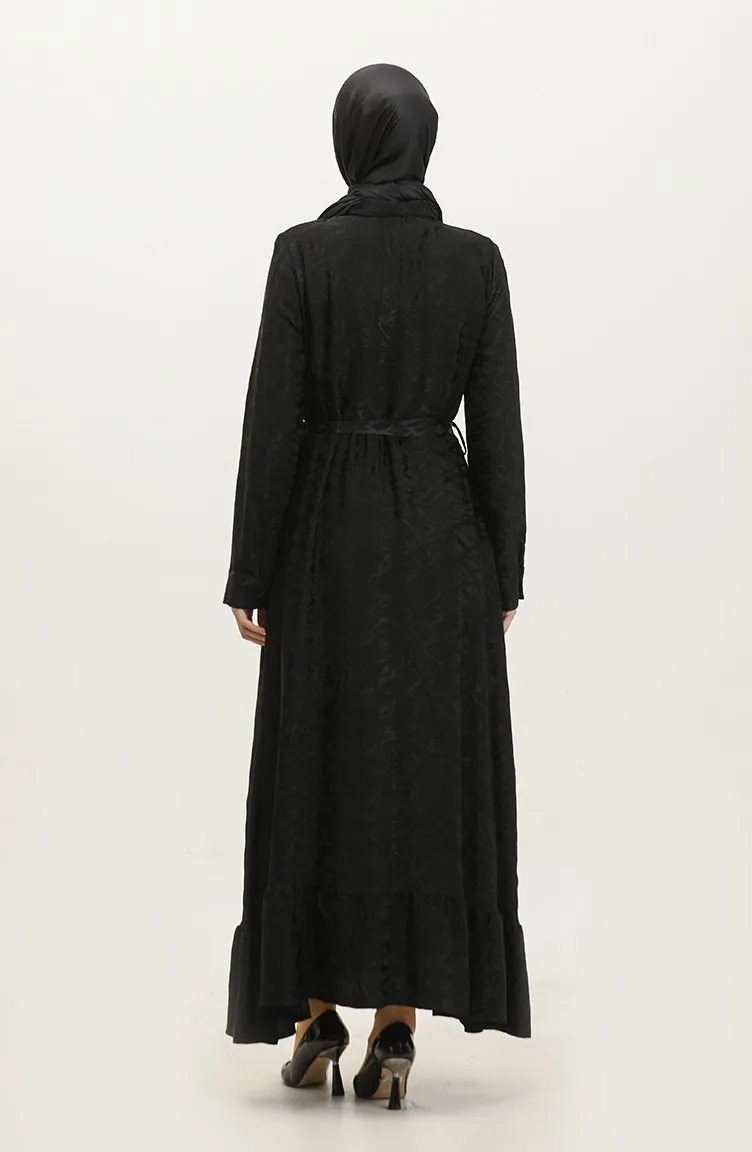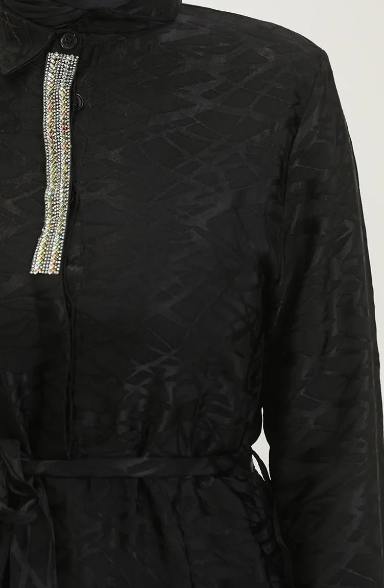 Black color is used. Elastane Fabric. Designed with patterned fabric. The product is used unlined. Suitable for 4 seasons. Plus size option available.