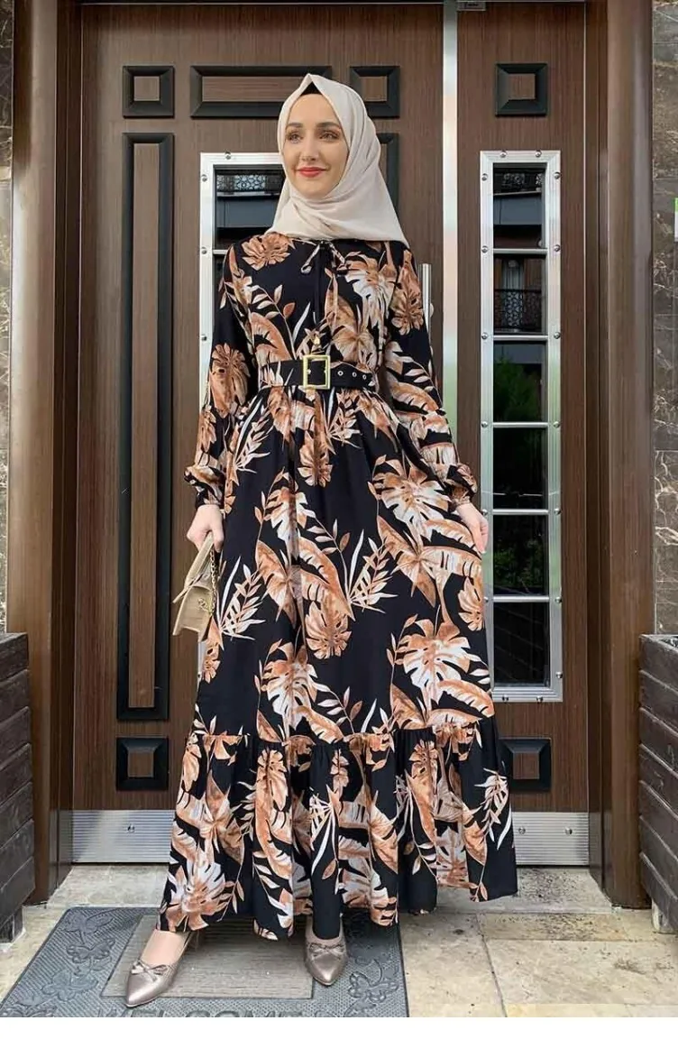 Black color is used. Viscose is a type of synthetic fabric and is convenient to use. Designed with patterned fabric. Suitable for 4 seasons. Plus size option available.