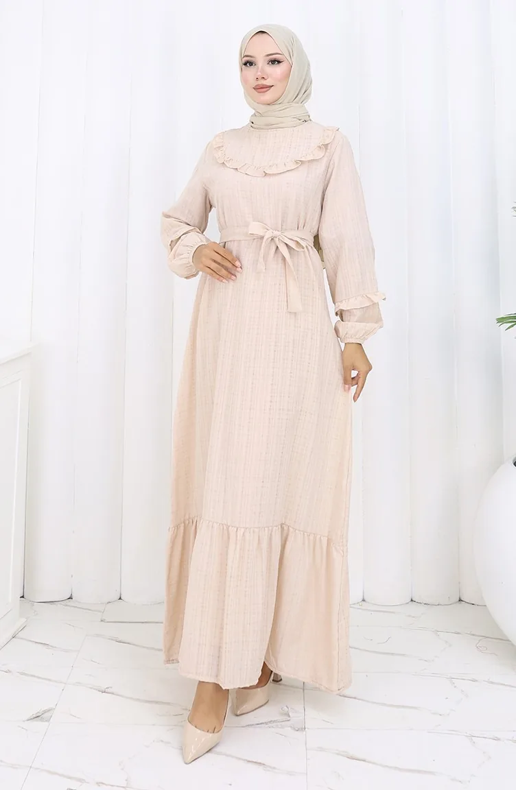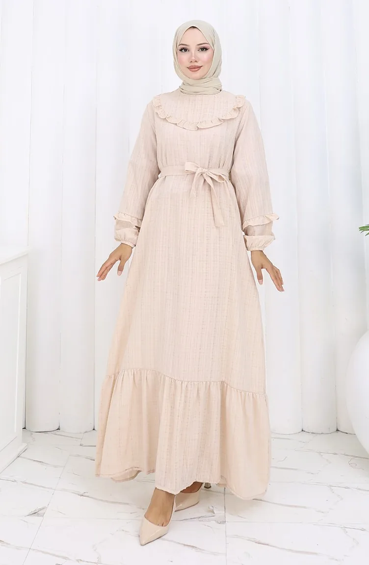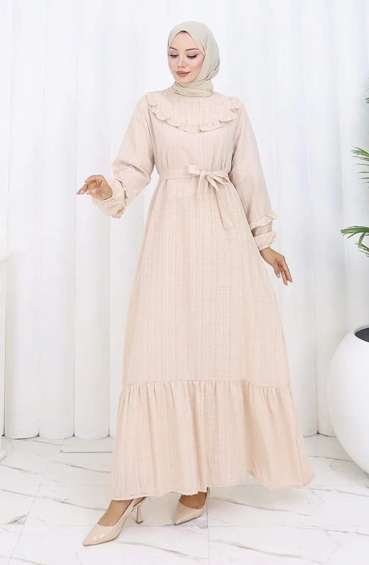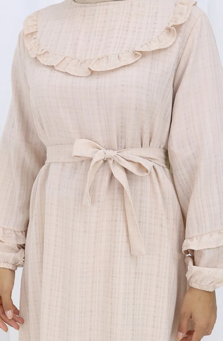 Jurk Met Ruches En Riem 2159-01 Beige 2159-01