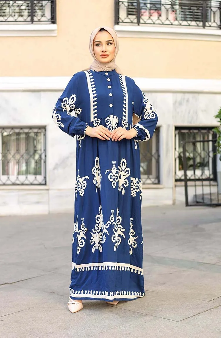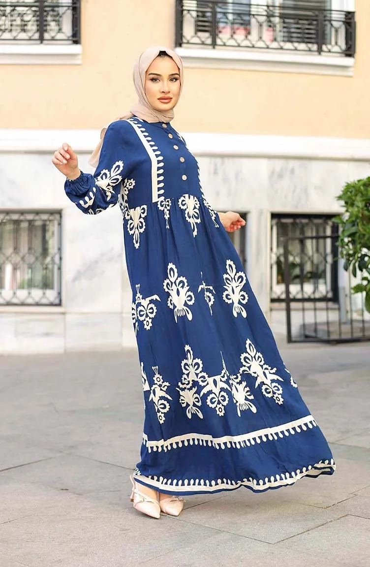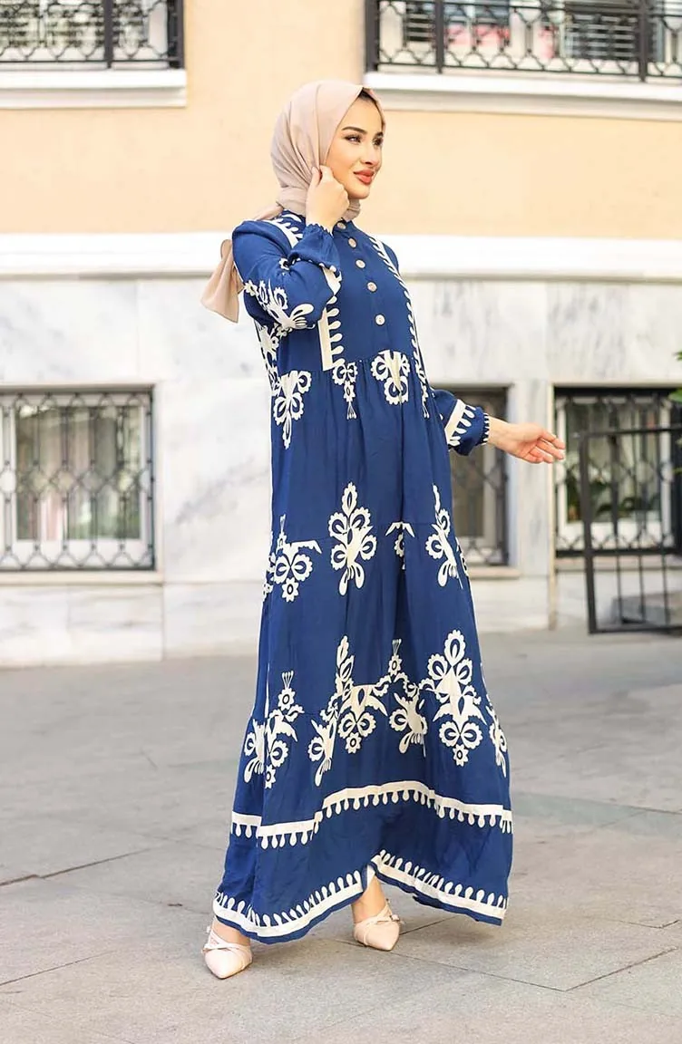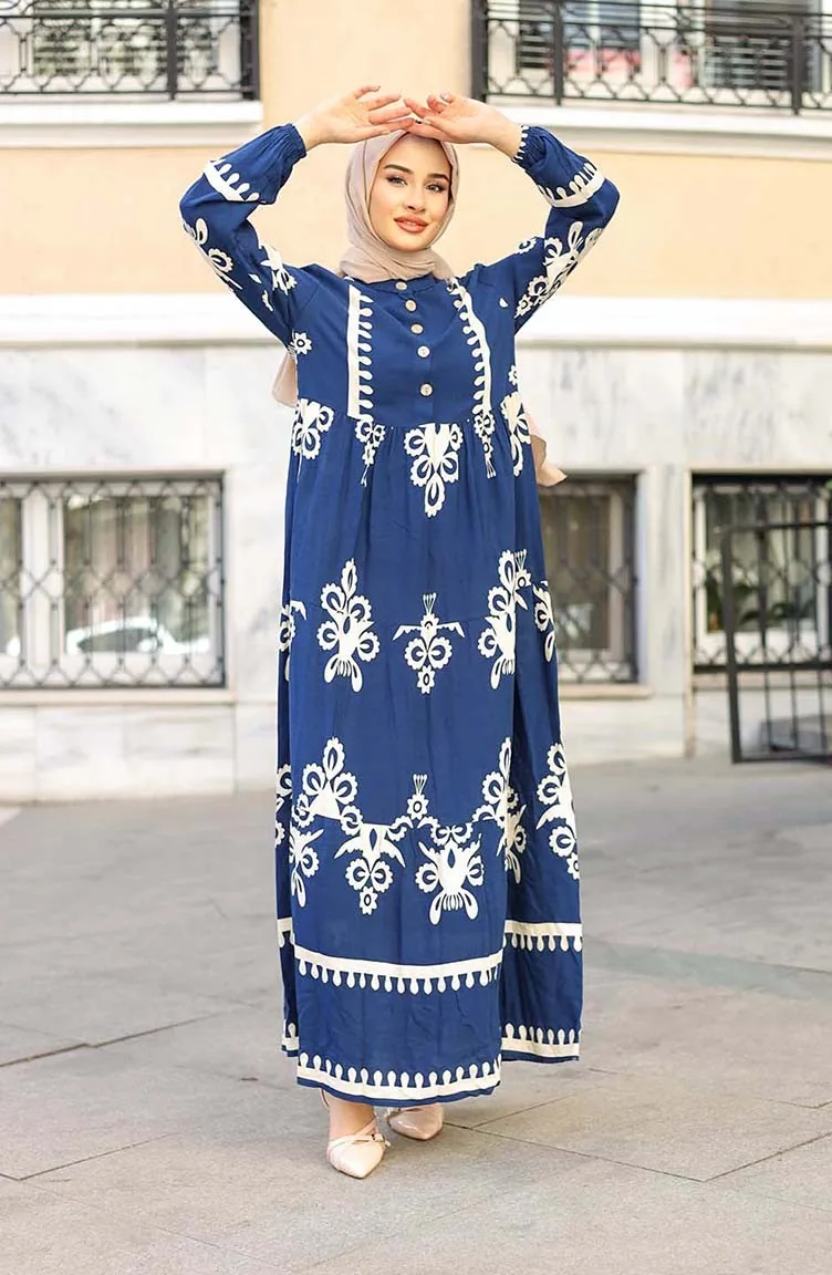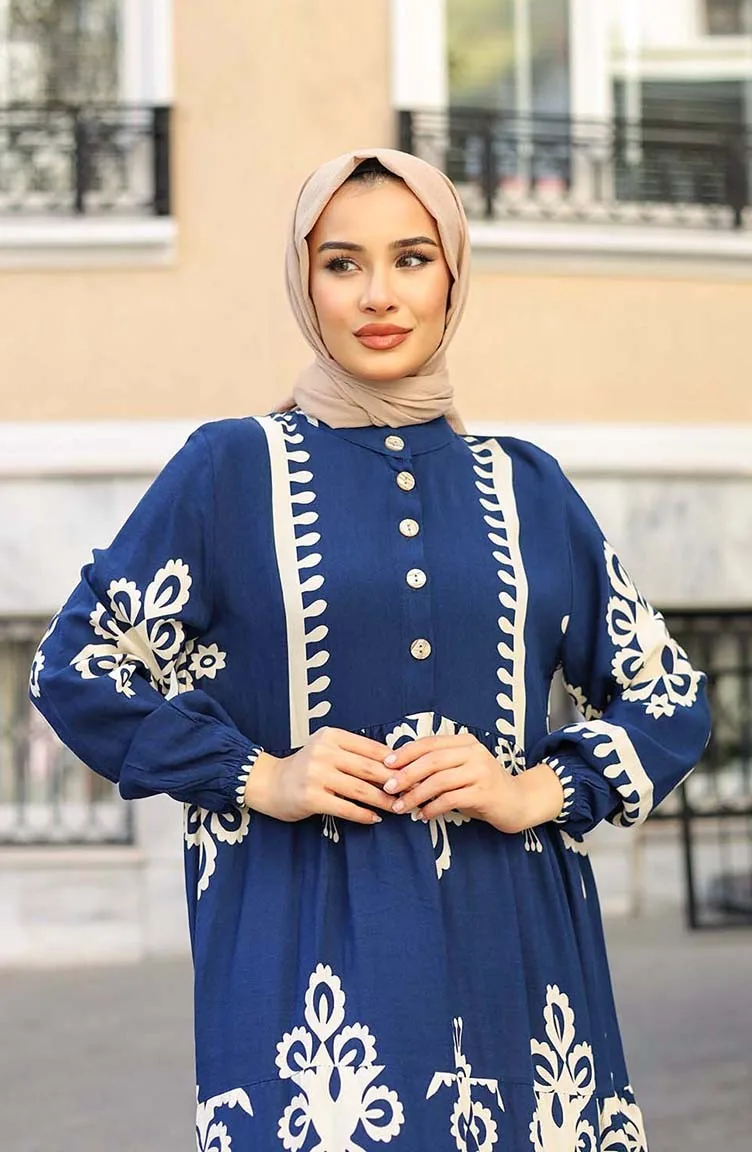 Jurk Met Tegelpatroon 4100-05 Marineblauw 4100-05