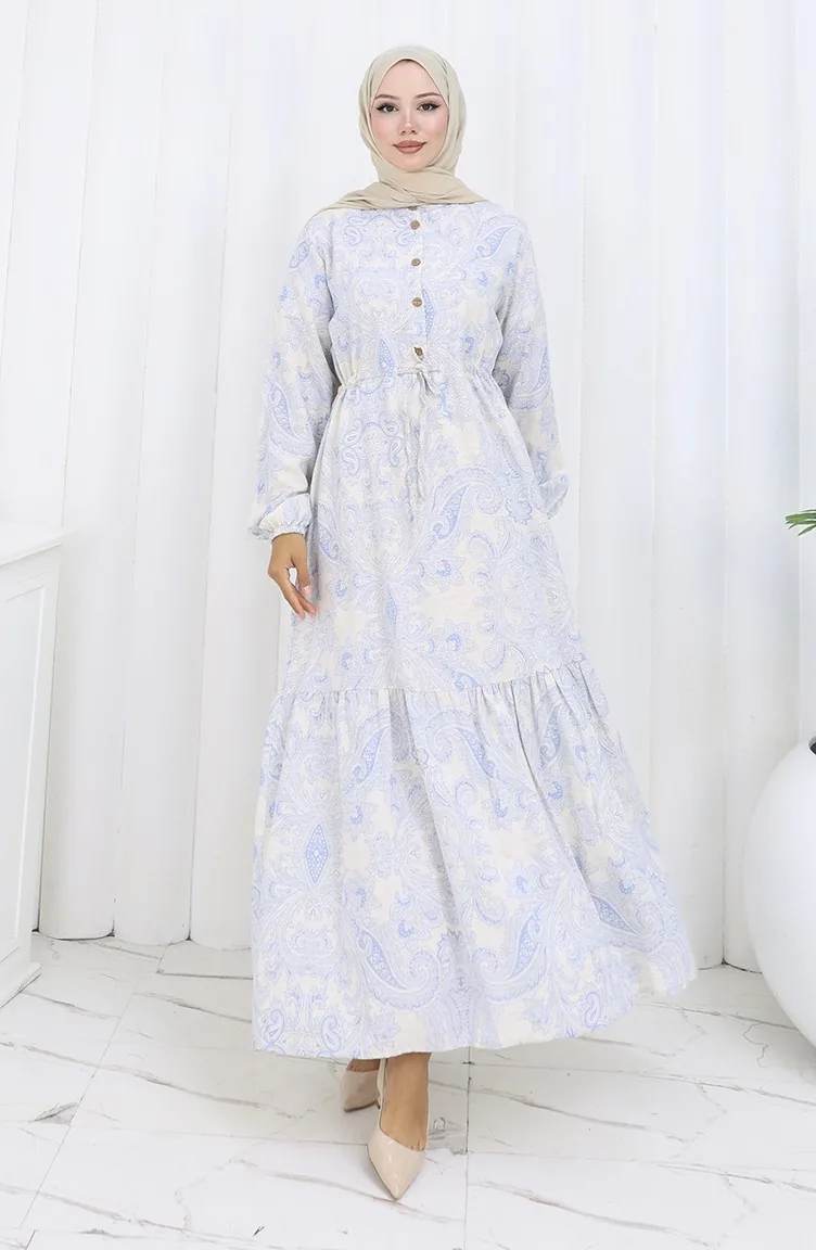 The linen fabric is resistant to heat and available in all seasons. Designed with patterned fabric. Buttons have been used to make it easy to use. It's made of elastic sleeves. Tippet collar is prefered. Suitable for 4 seasons. Plus size option available.