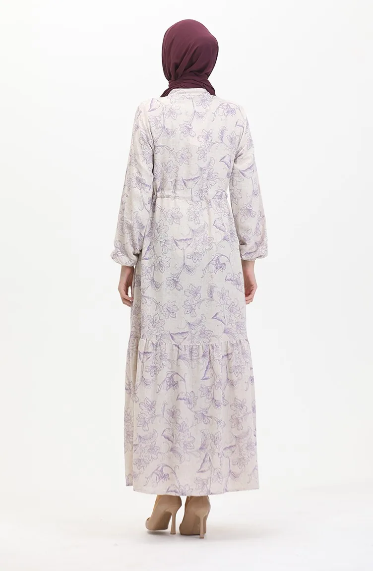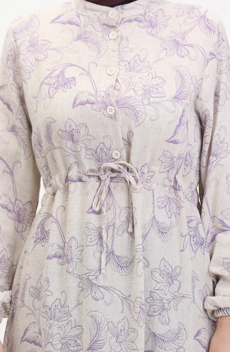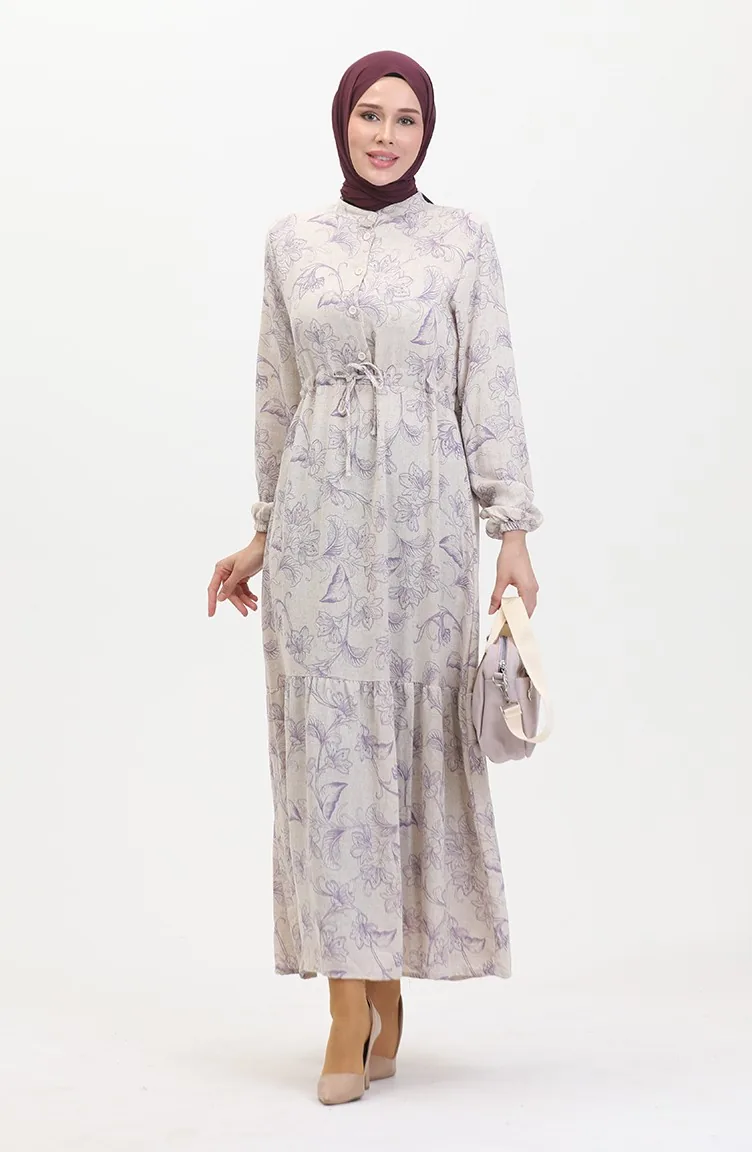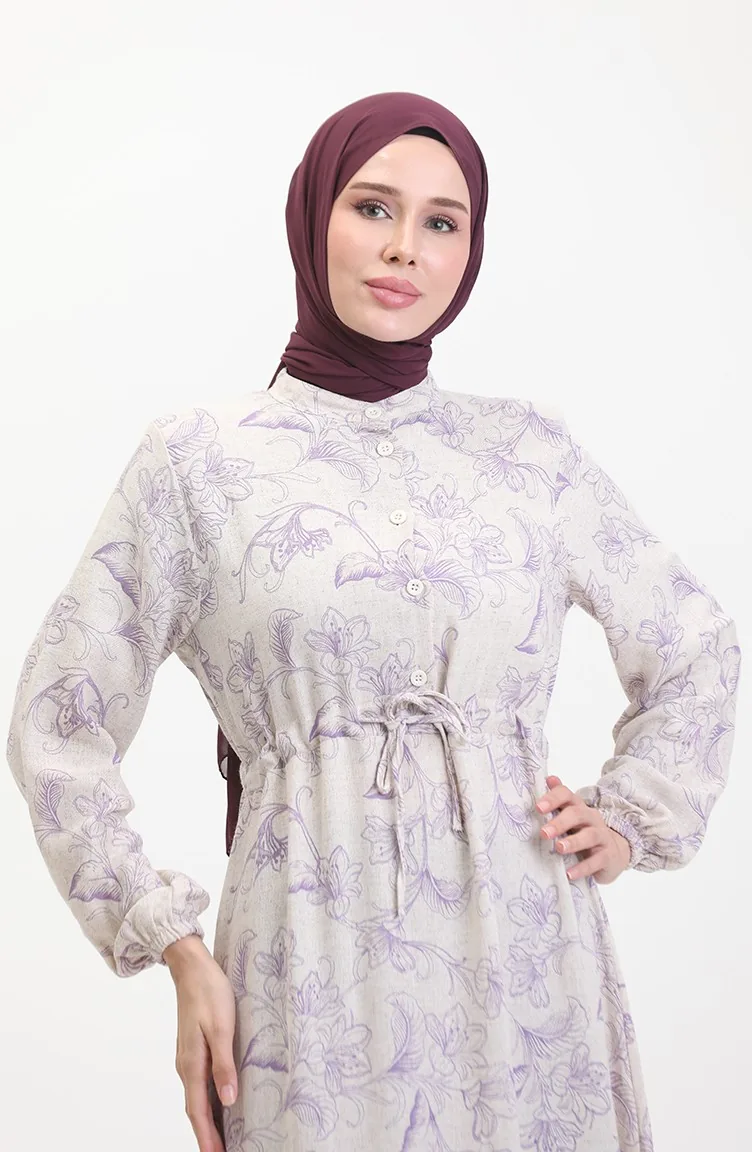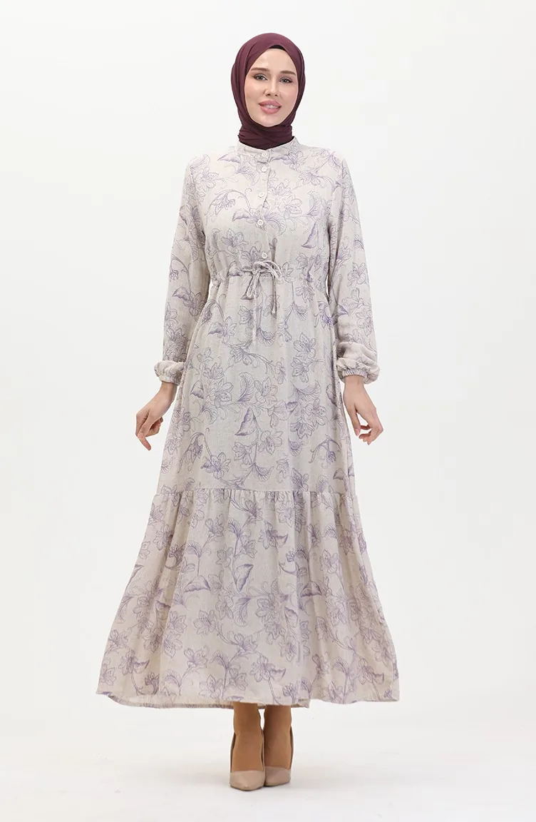 Linnen Jurk Met Knopen En Veters Aan De Voorkant 0520-03 Beige Lila 0520-03