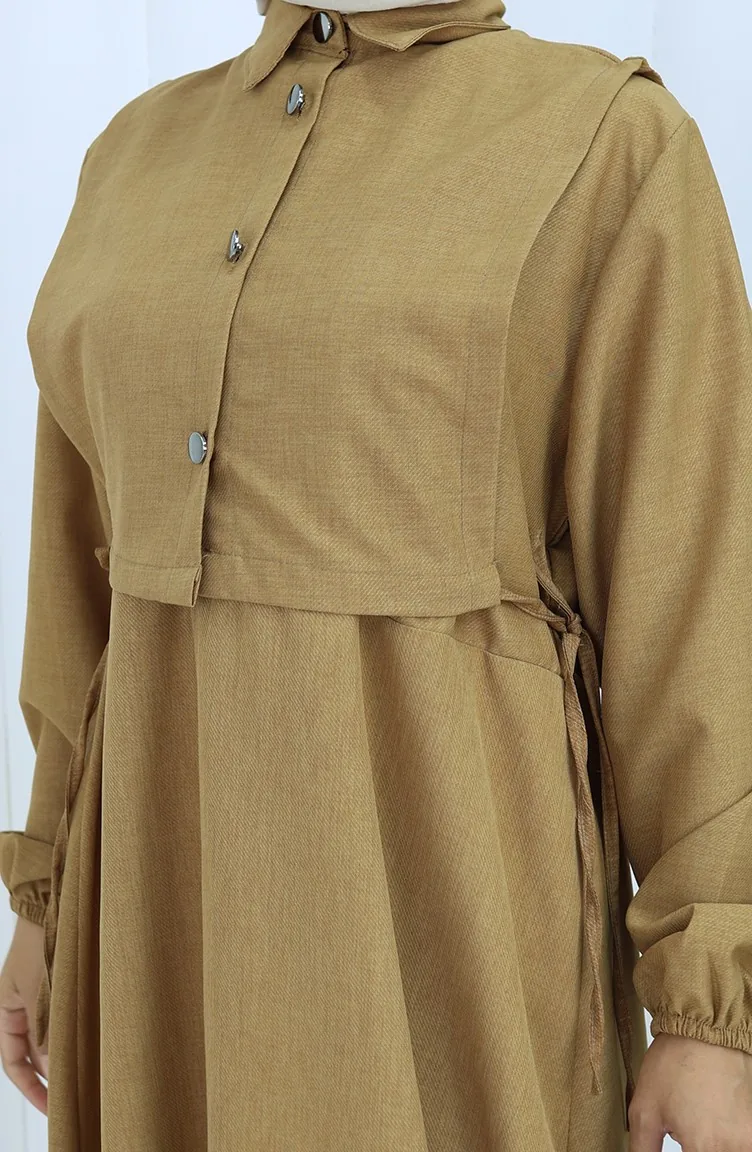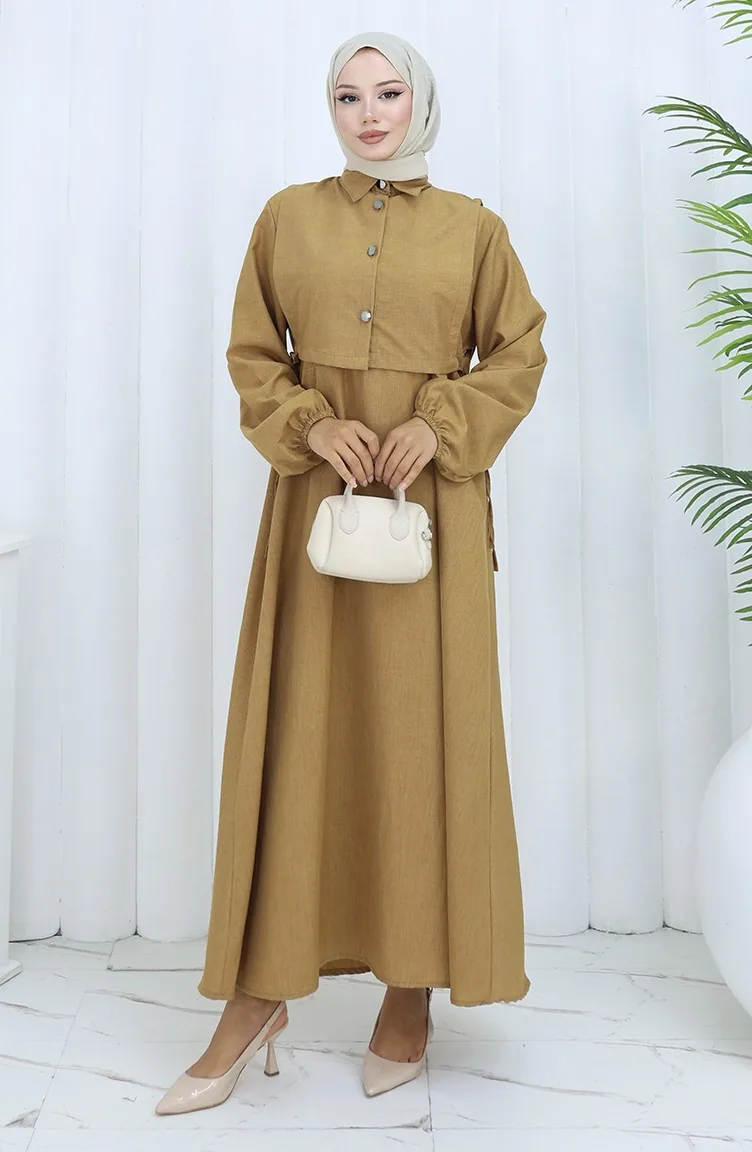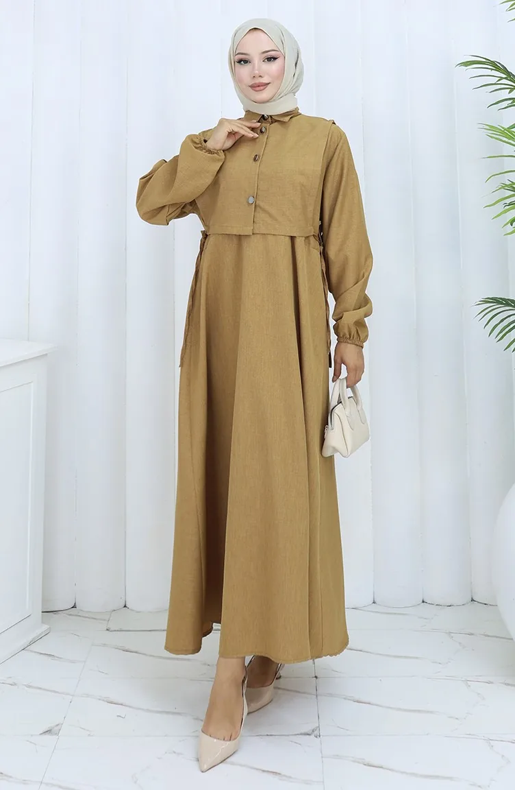 The linen fabric is resistant to heat and available in all seasons. It has a plain appearance. Buttons have been used to make it easy to use. It's made of elastic sleeves. Suitable for 4 seasons. Plus size option available.