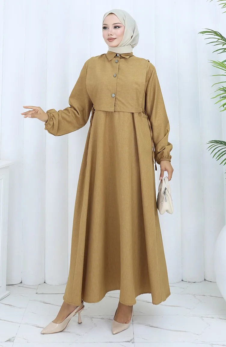 Linnen Vestjurk Tweedelig Pak 2141-01 Melkkoffie 2141-01