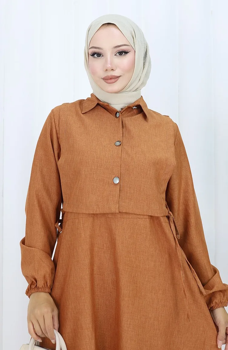 The linen fabric is resistant to heat and available in all seasons. It has a plain appearance. Buttons have been used to make it easy to use. It's made of elastic sleeves. Suitable for 4 seasons. Plus size option available.