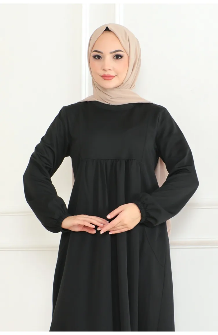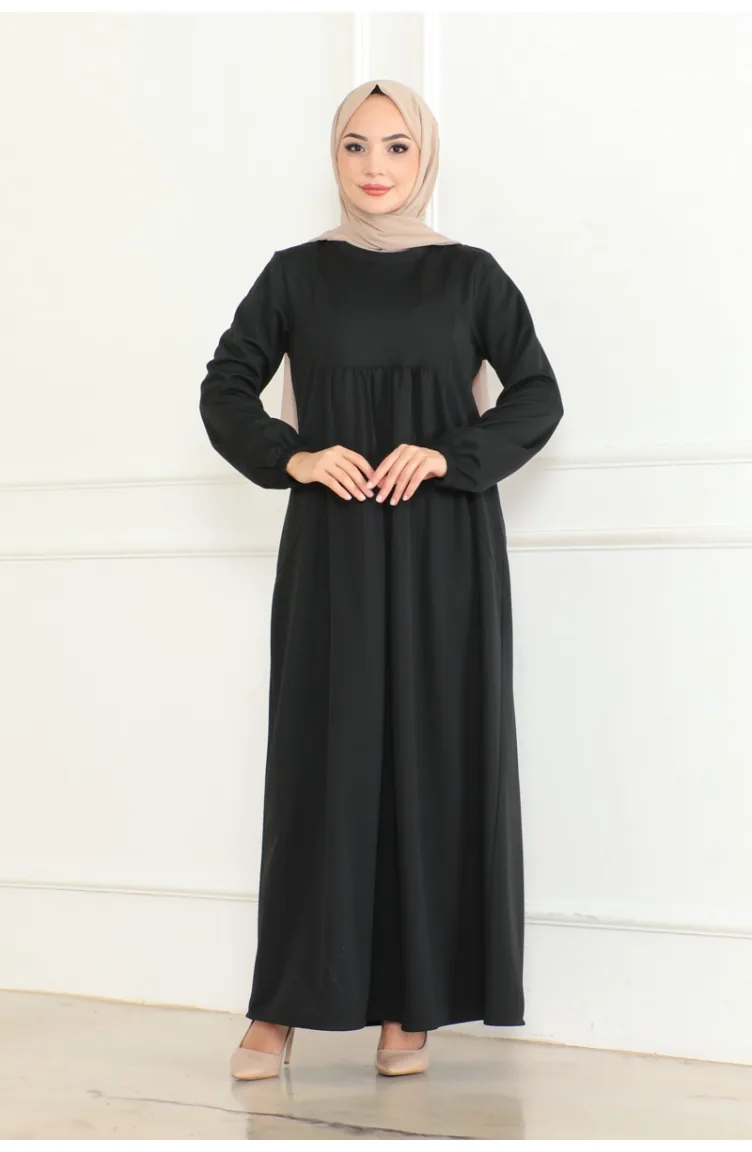 Black color is used. It has a plain appearance. Suitable for 4 seasons. Plus size option available.