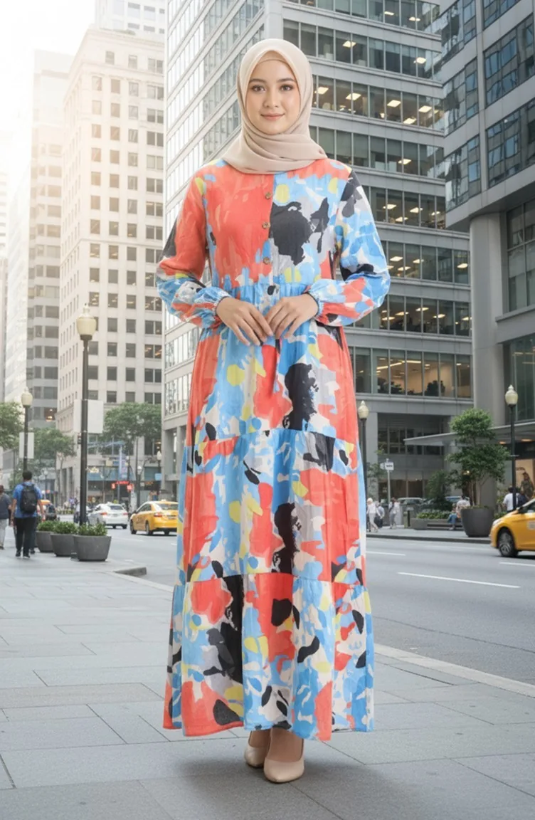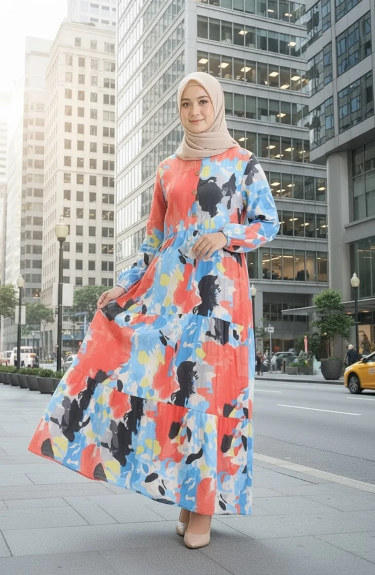 Designed with patterned fabric. Buttons have been used to make it easy to use. It's made of elastic sleeves. Tippet collar is prefered. Suitable for 4 seasons. Plus size option available.
