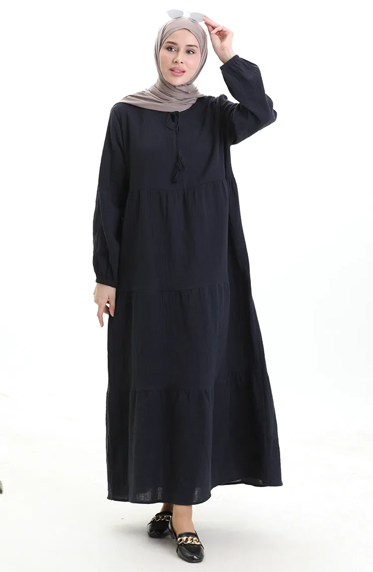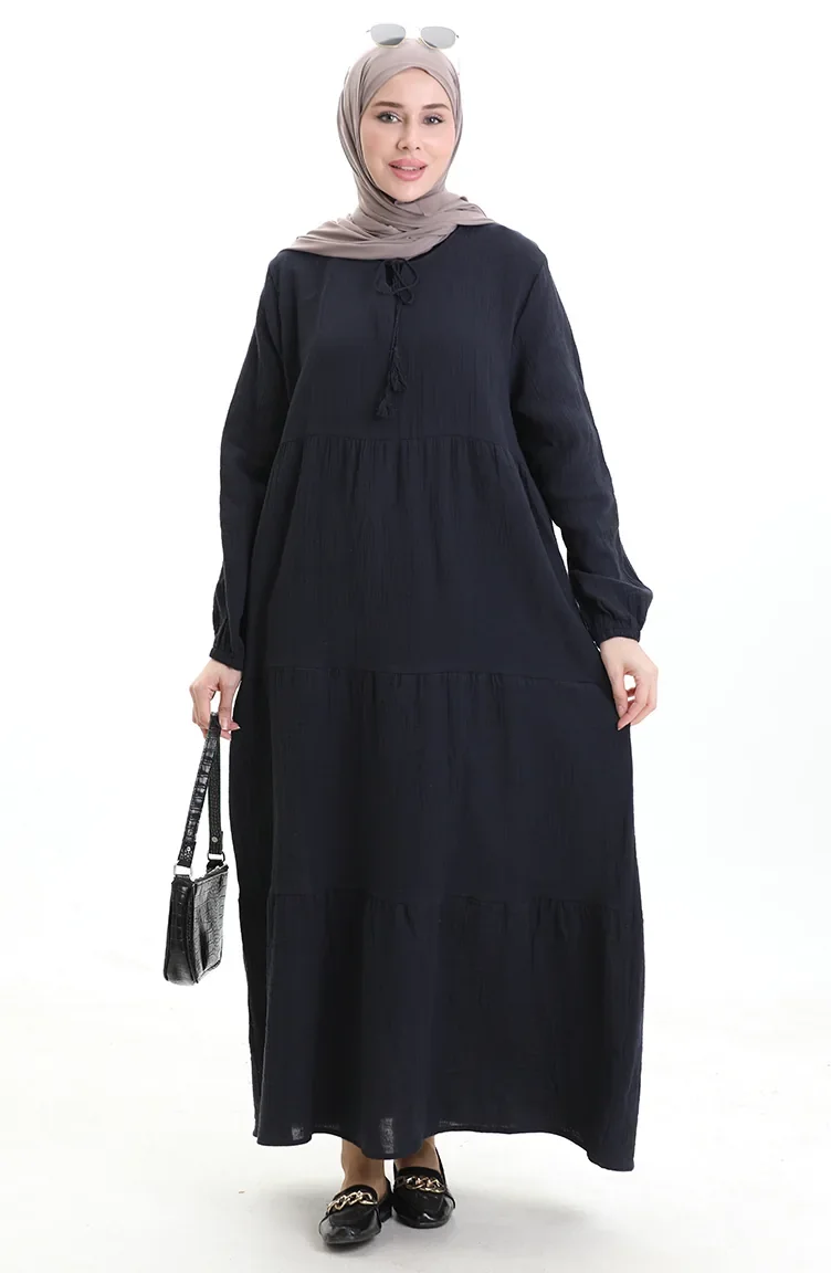 Mousseline Jurk 6050-02 Marineblauw 6050-02