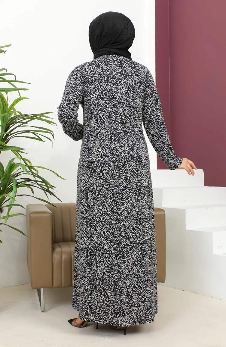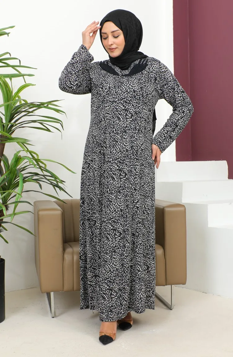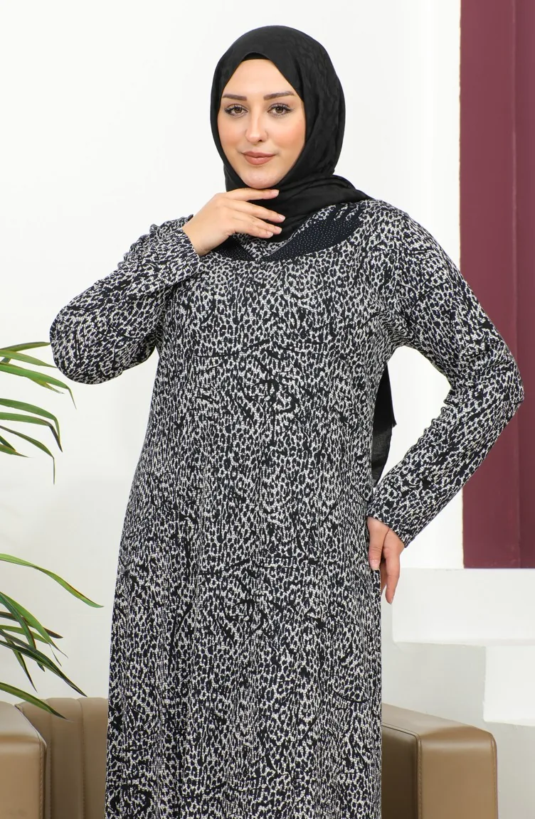 Plus-size Jurk Met Stenenprint En Patroon 4827-01 Marineblauw 4827-01