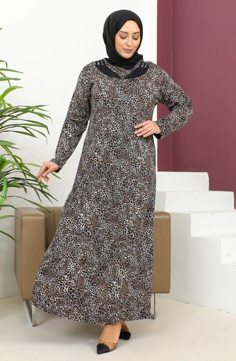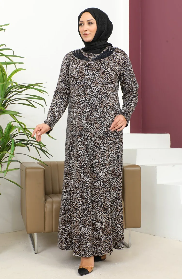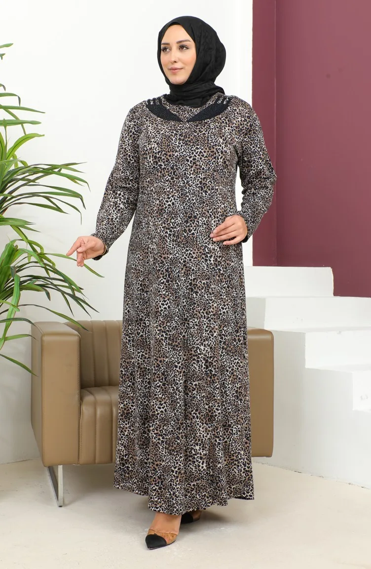 Plus Size Stone Print Patterned Dress 4827B-01 Zwart 4827B-01