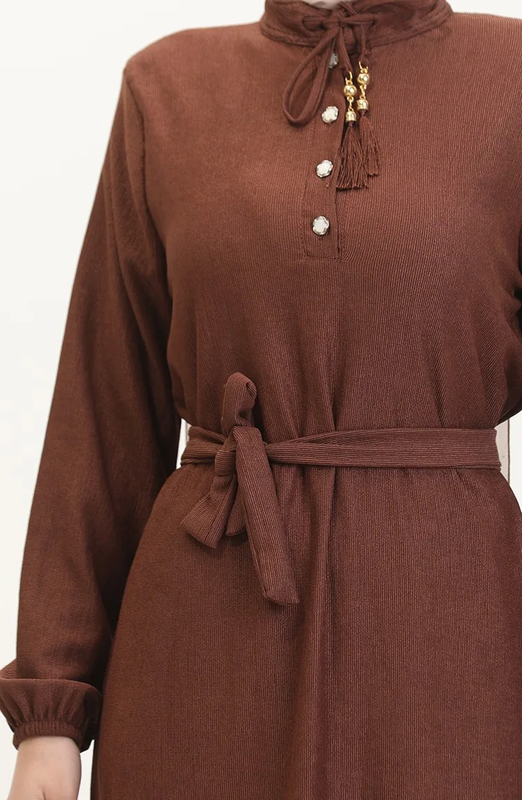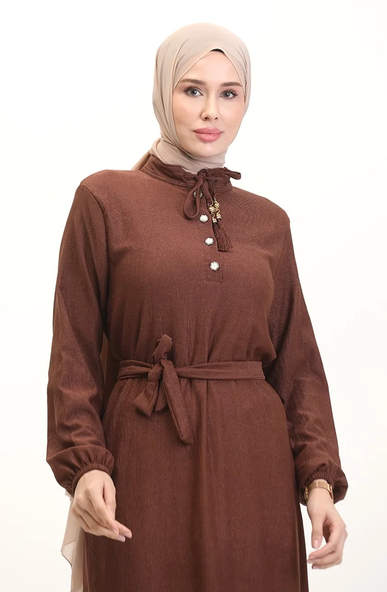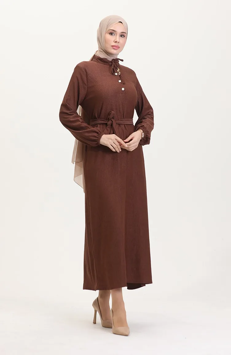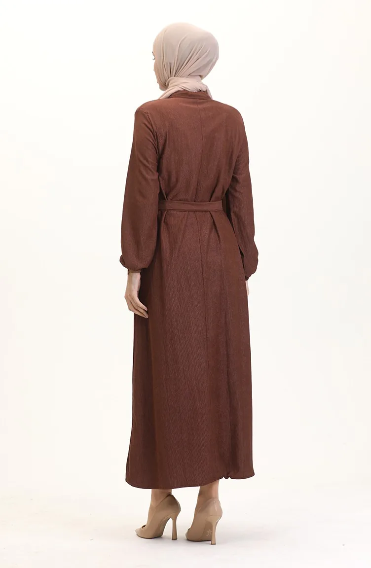 Tobacco color is used. Elastane Fabric. It has a plain appearance. The product is used unlined. Tippet collar is prefered. Suitable for 4 seasons. Plus size option available.