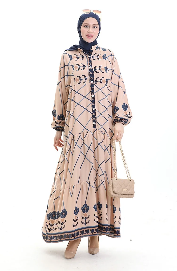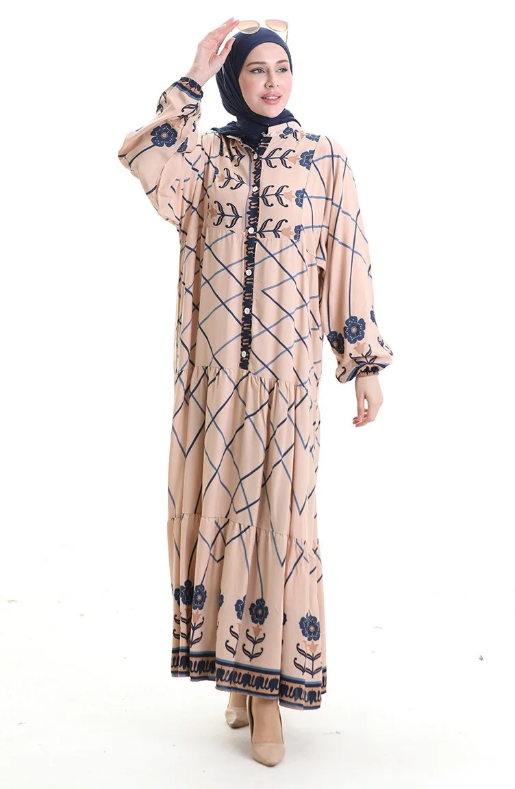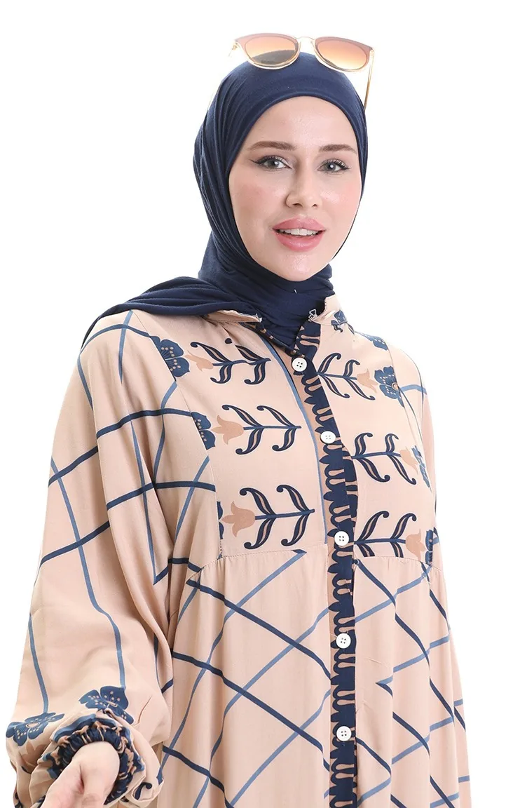 Viscose is a type of synthetic fabric and is convenient to use. Designed with patterned fabric. Buttons have been used to make it easy to use. It's made of elastic sleeves. Tippet collar is prefered. Suitable for 4 seasons. Plus size option available.