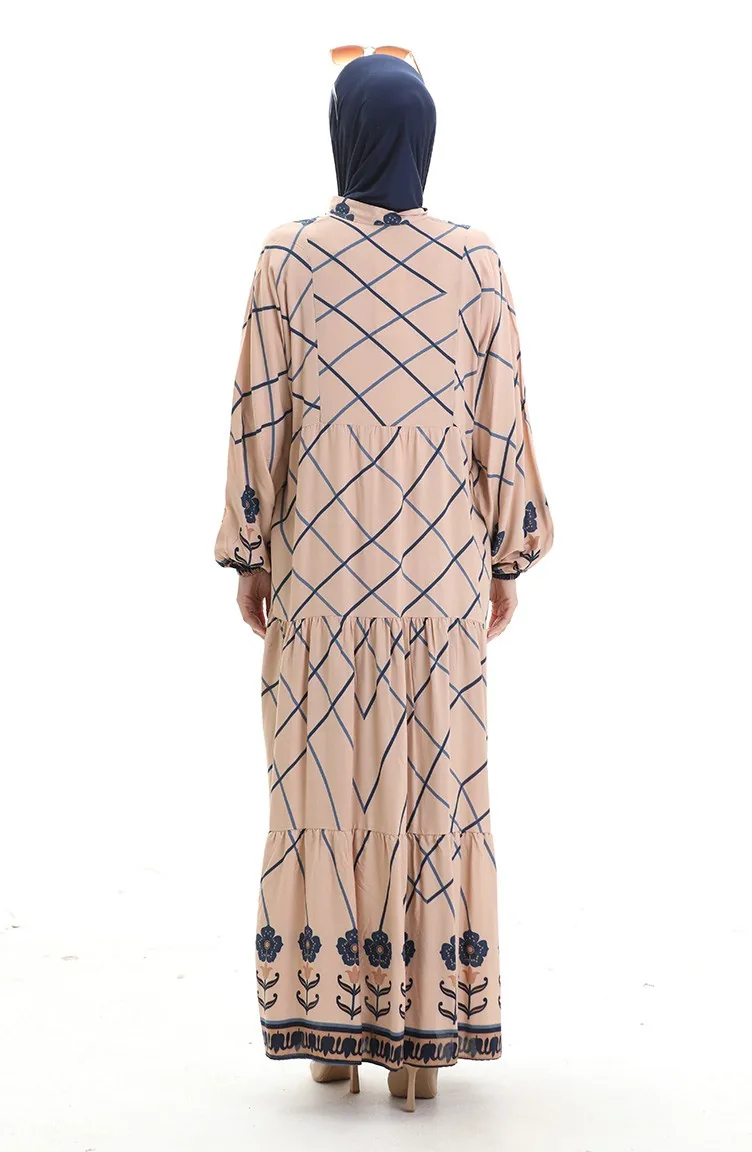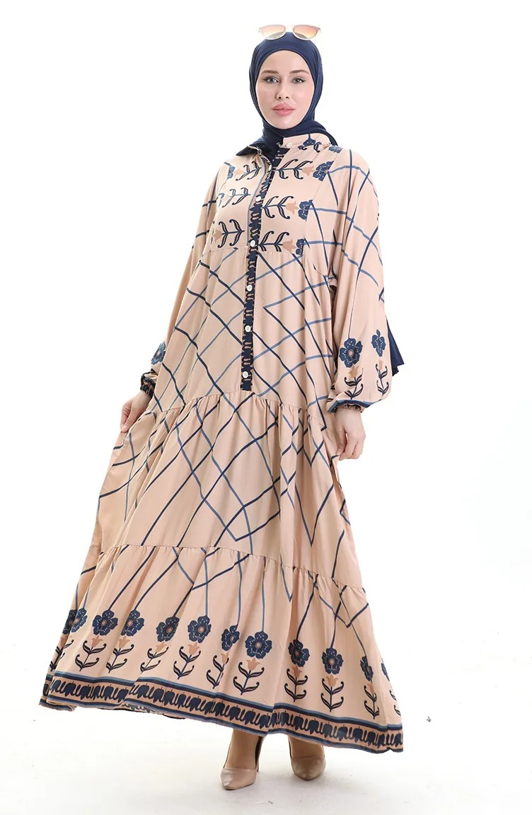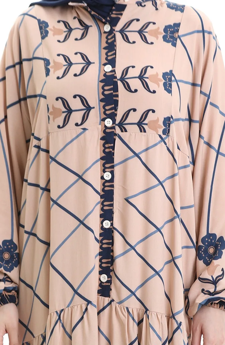 Rechterkraagjurk Met Patroon 2075-01 Mink Marineblauw 2075-01