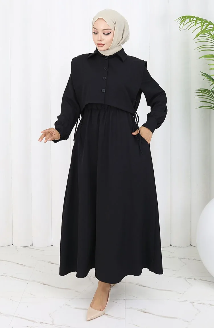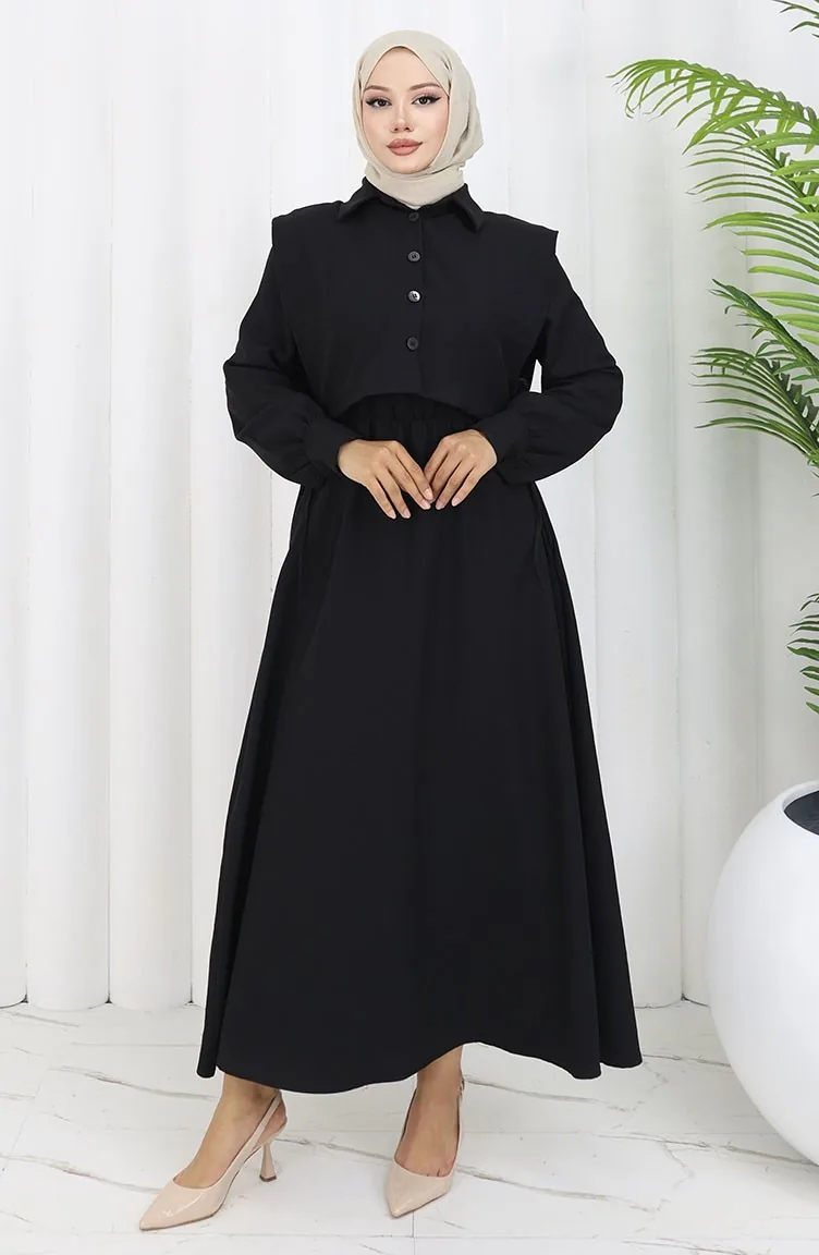 Shirtkraag Bolero Detail Jurk 2051-04 Zwart 2051-04