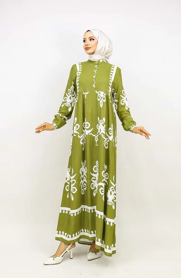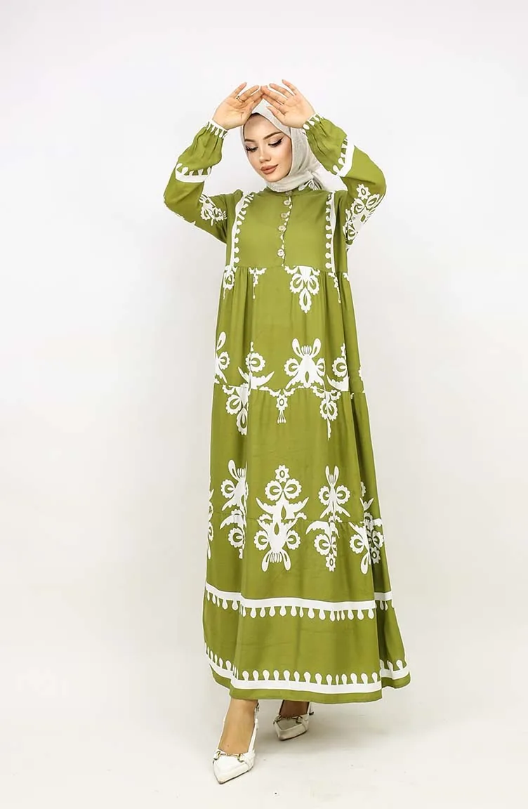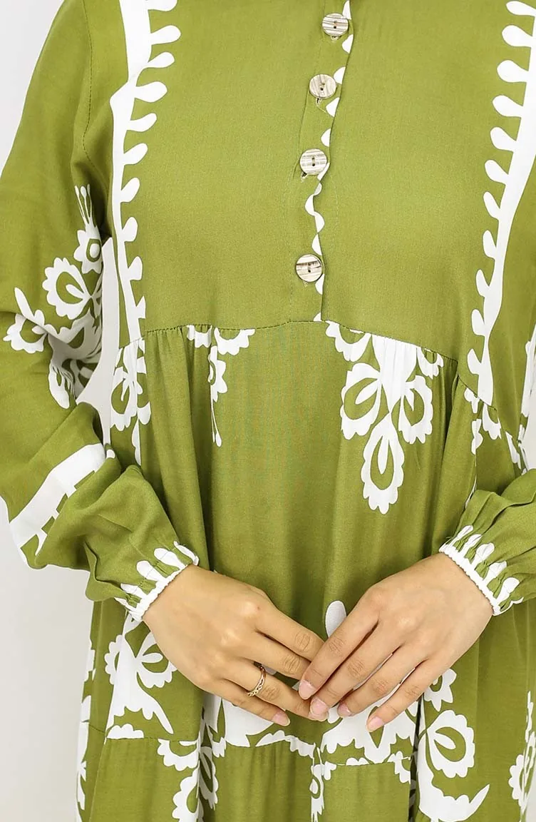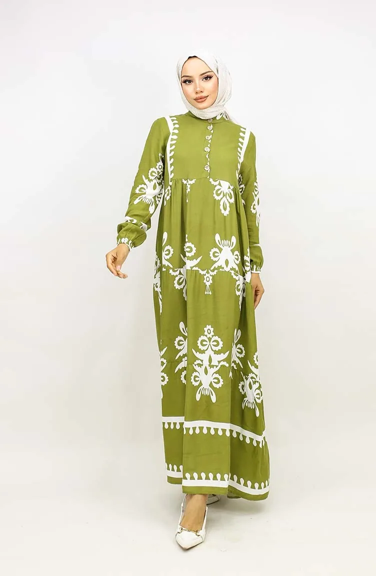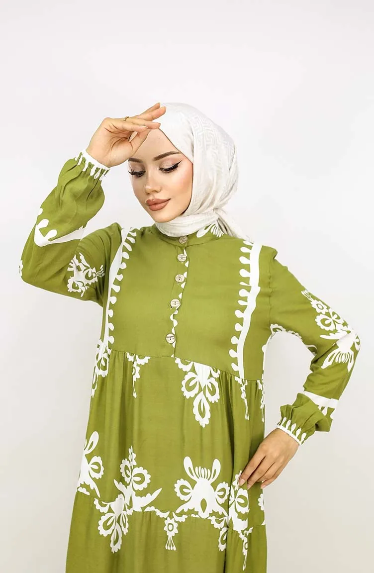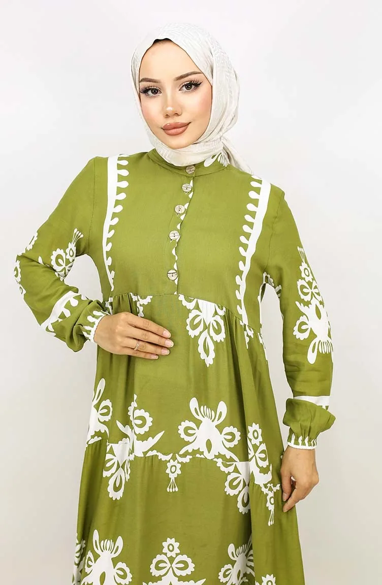 Tegelpatroon Jurk 4100-09 Oliegroen 4100-09