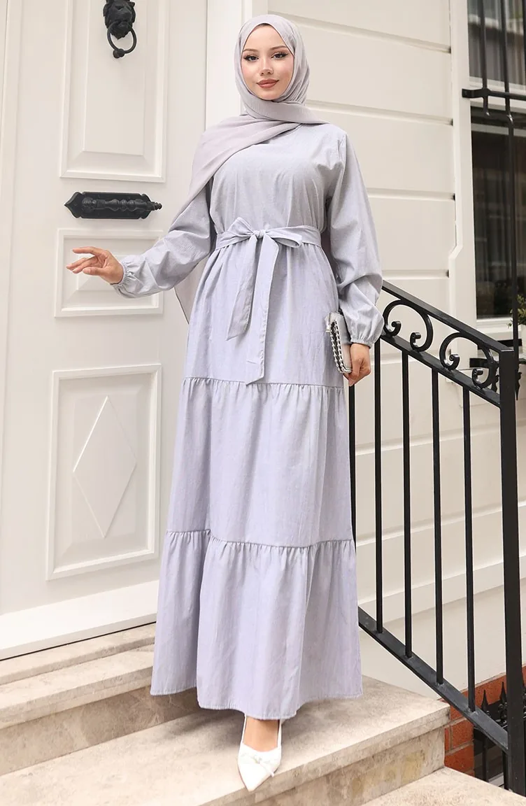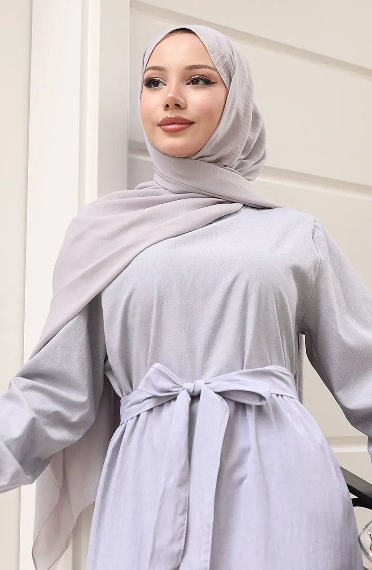 Terikoton Belted Dress 0098-01 Grijs 0098-01