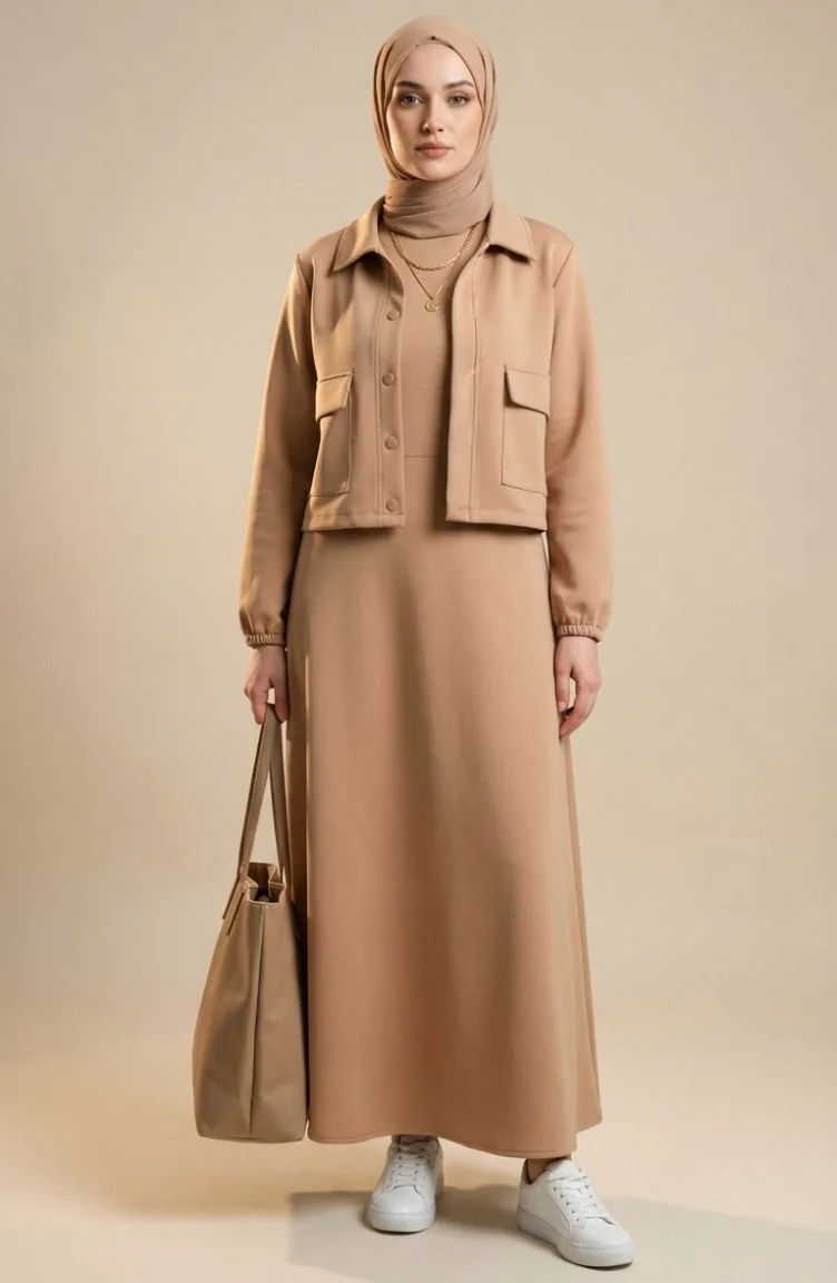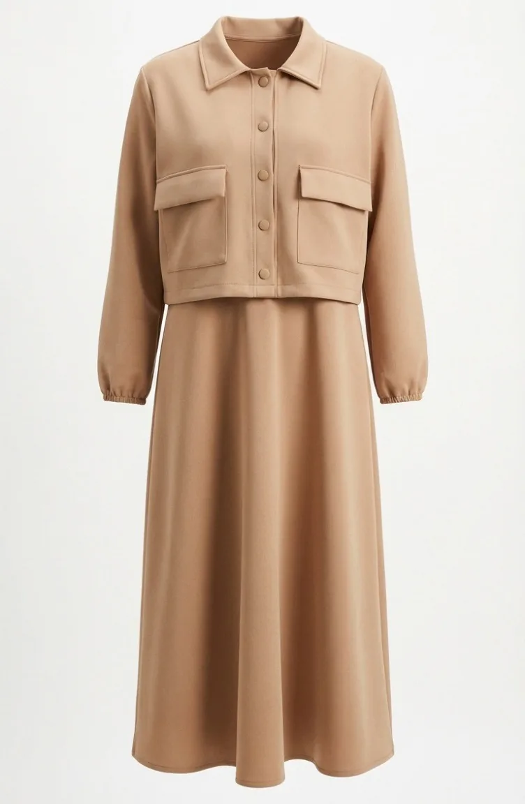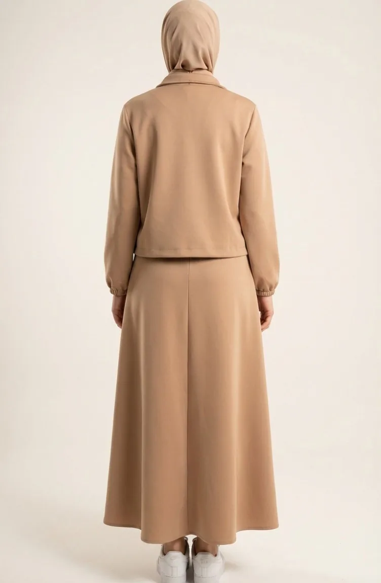 Tweedelig Setje Van Jasje En Jurk Van Scuba-stof 0233-02 Milky Coffee 0233-02