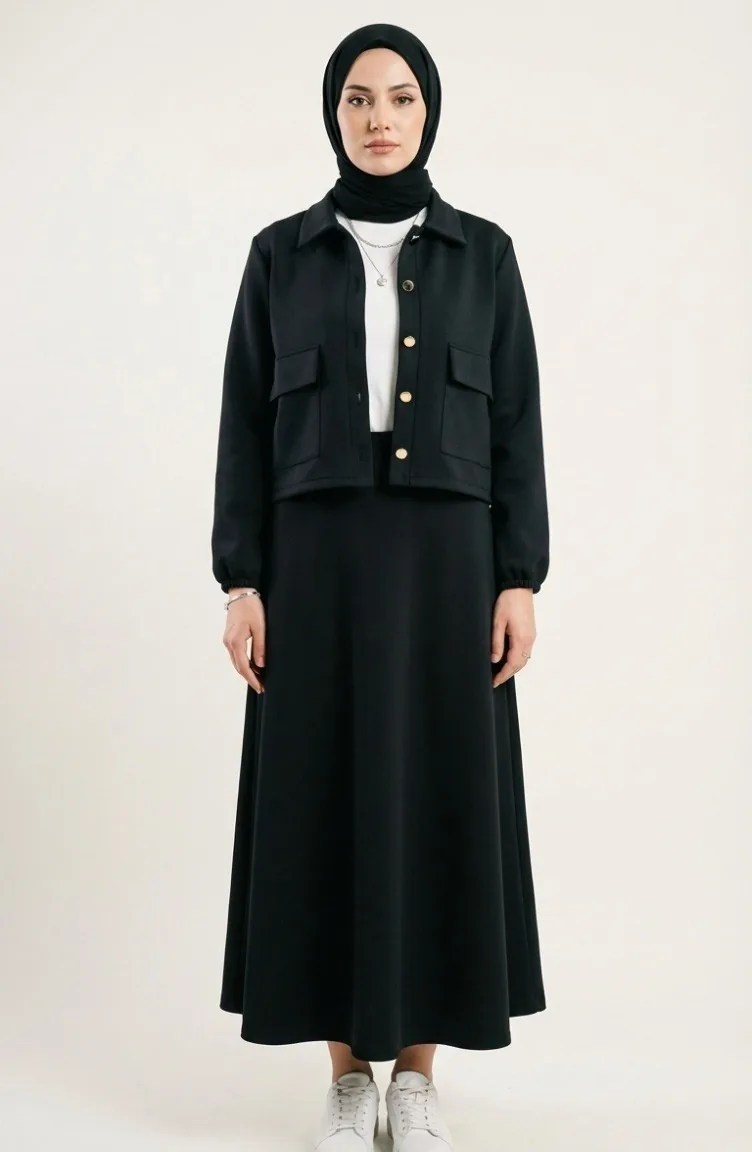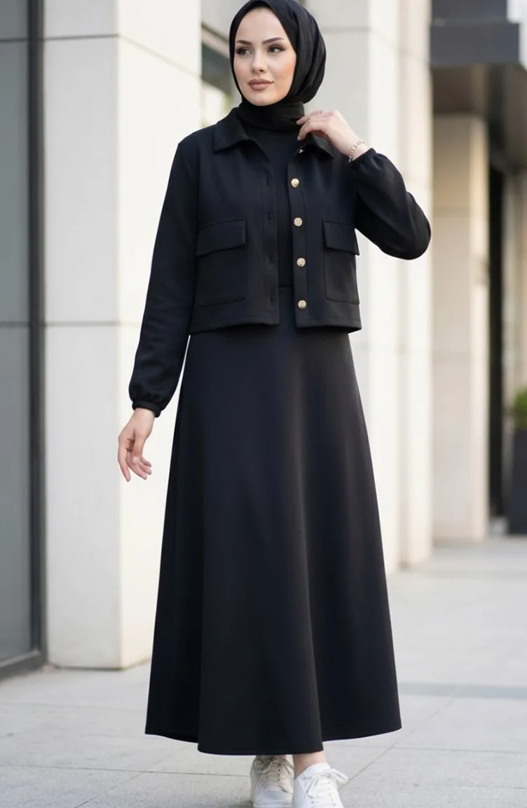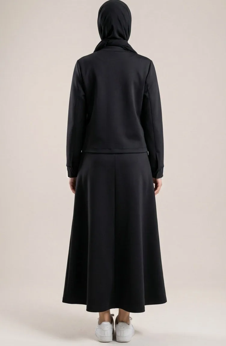 Tweedelig Setje Van Jasje En Jurk Van Scuba-stof 0233-03 Zwart 0233-03