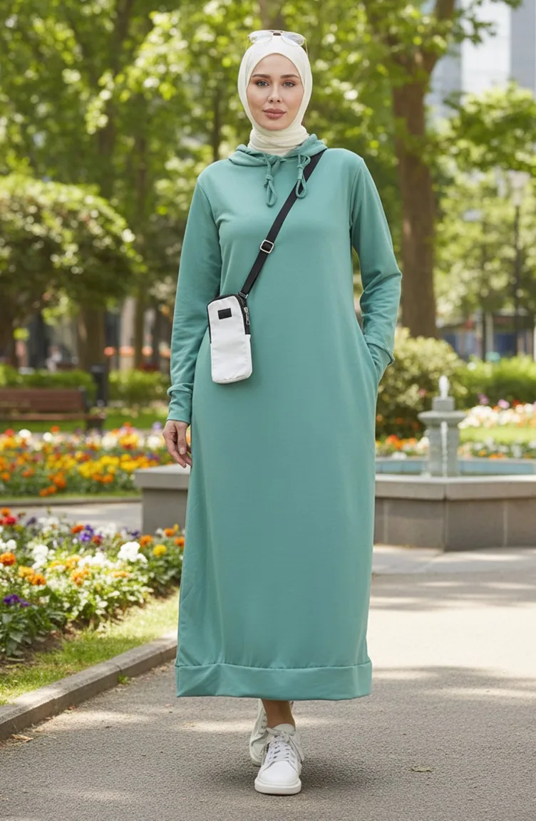 The cotton fabric has an absorbent texture. It has a plain appearance. It's a hooded product. Spor. Plus size option available.