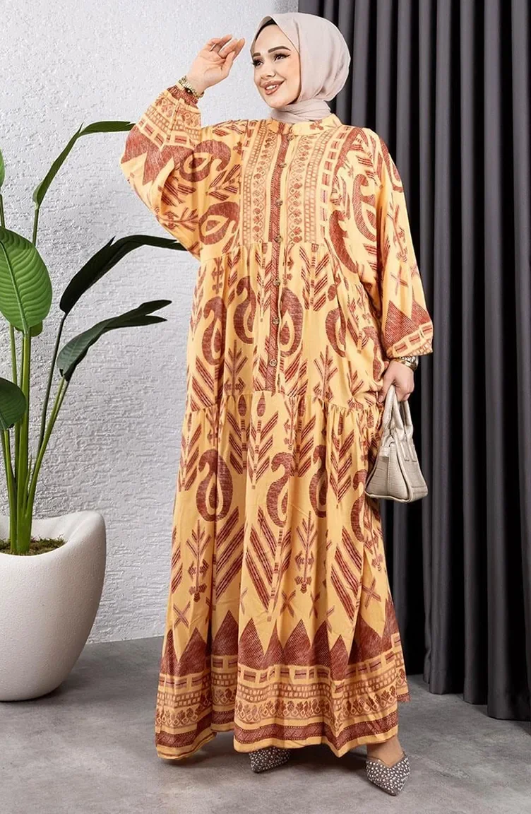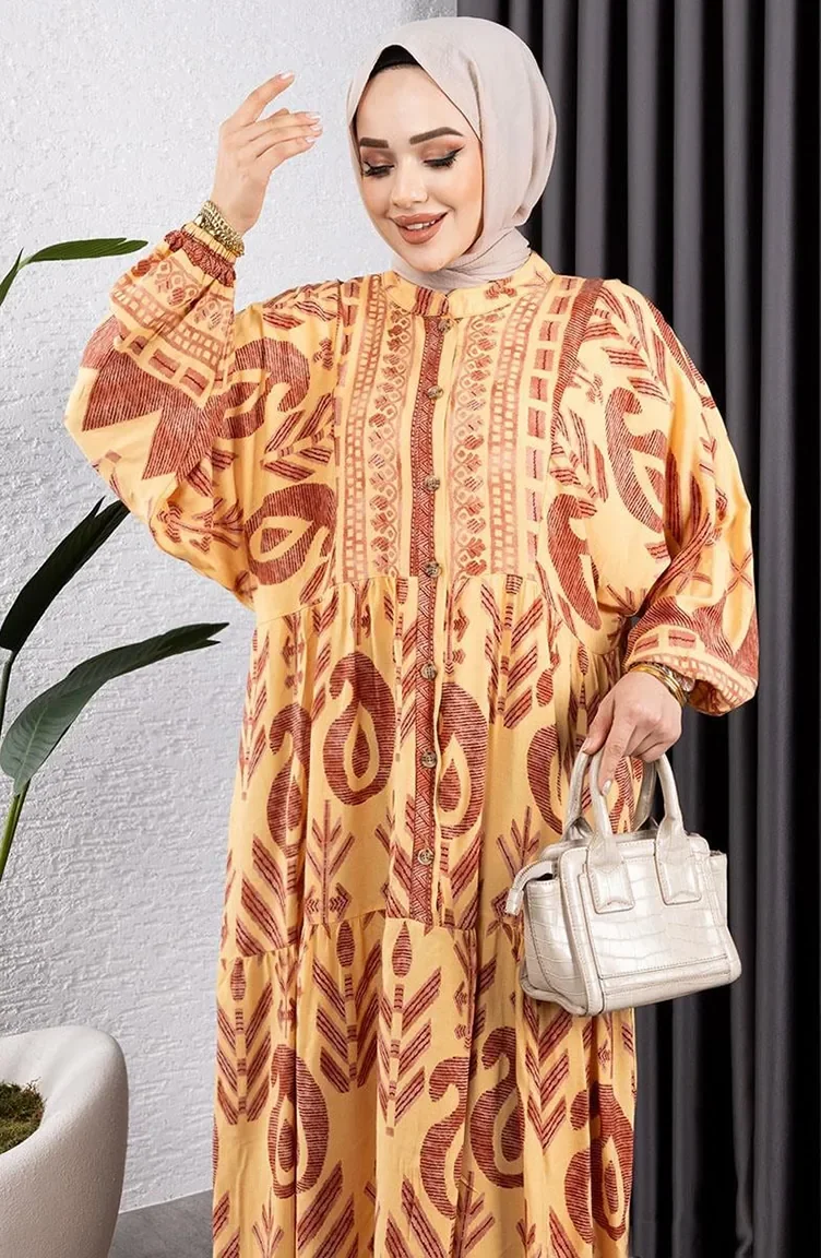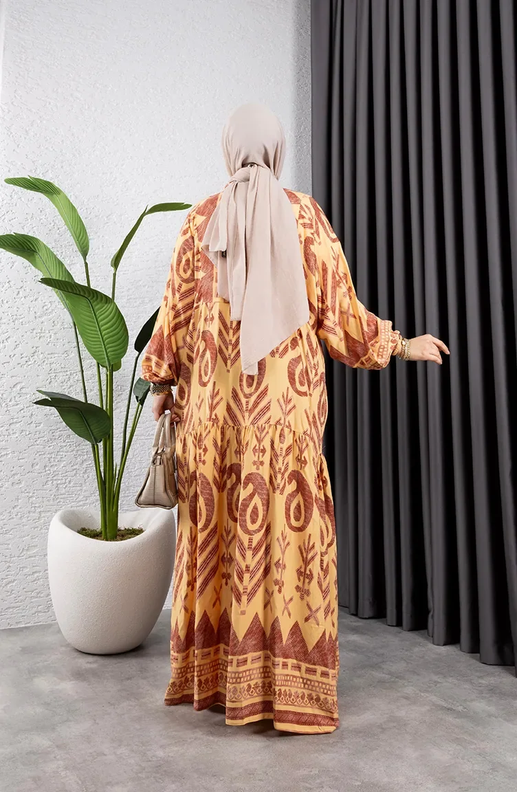 Viscose Jurk Met Etnisch Patroon 7105-03 Geel 7105-03