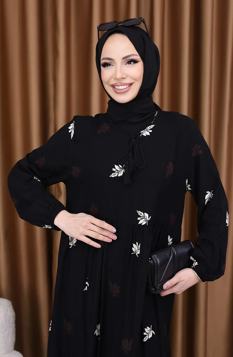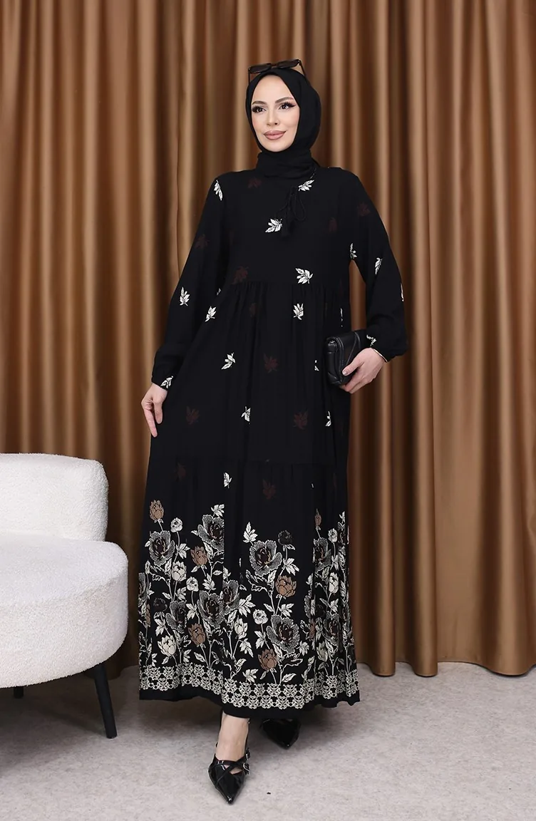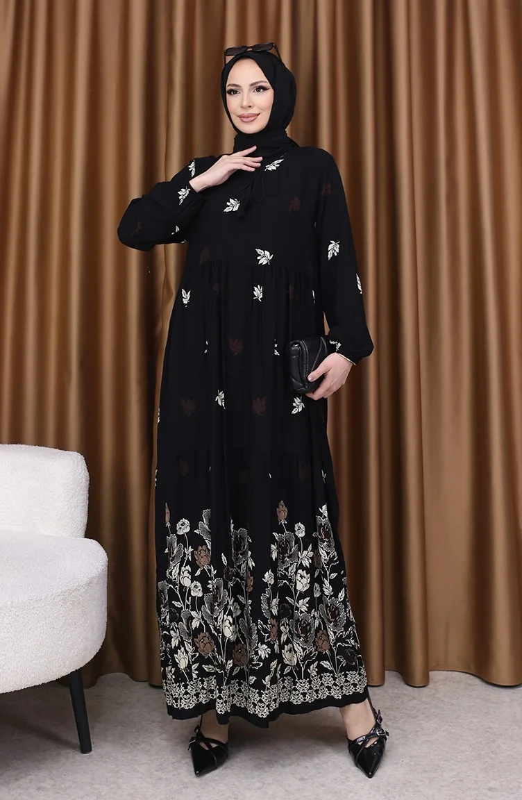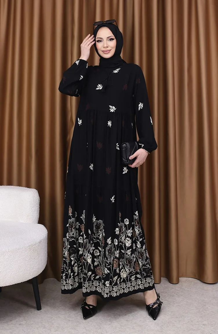 Viscose Jurk Met Patroon 4080-05 Zwart 4080-05
