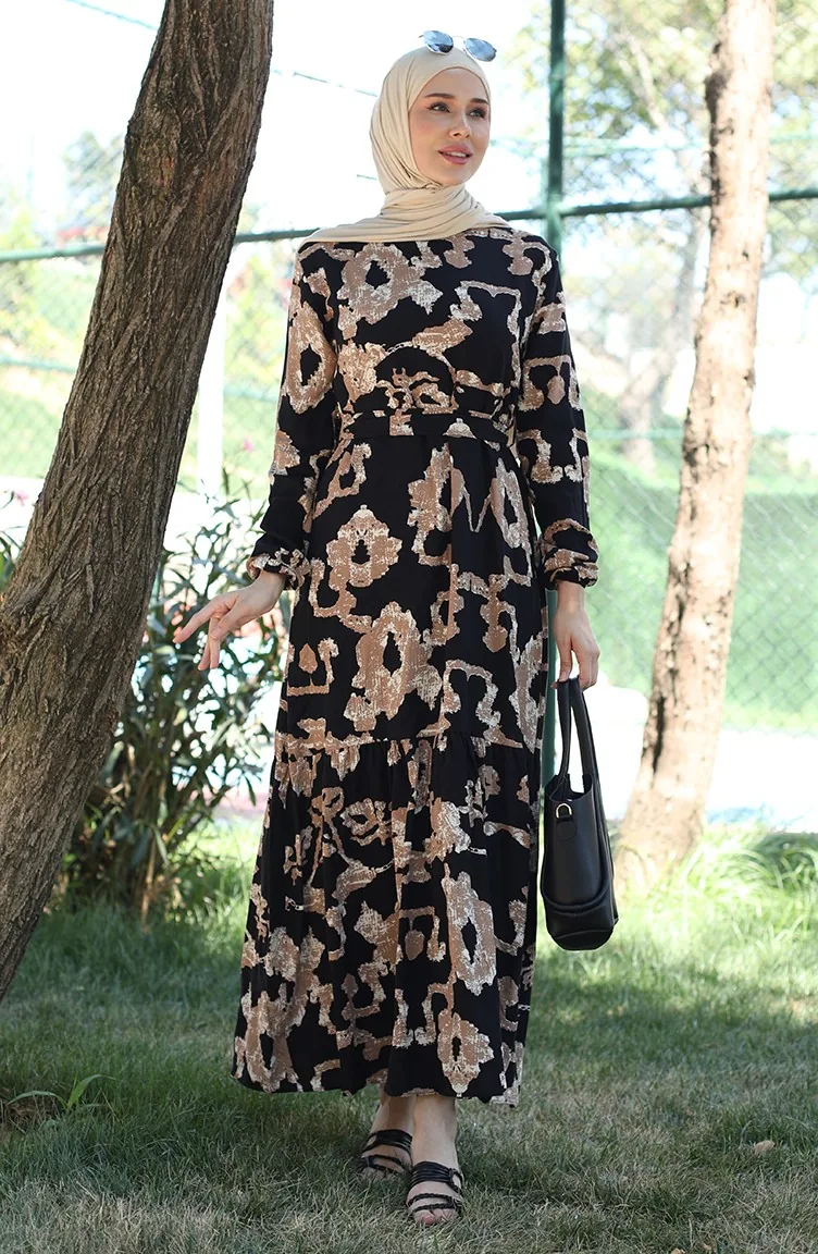 Viscose-jurk Met Patroon 81872A-01 Zwart Nerts 81872A-01