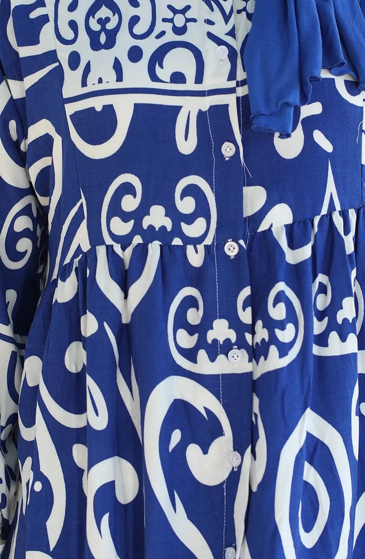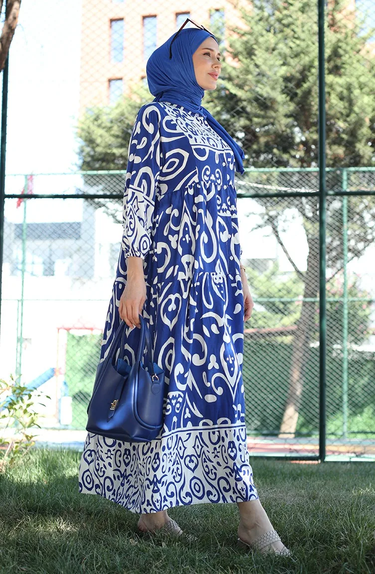Viscose-jurk Met Patroon 81875-04 Indigo 81875-04